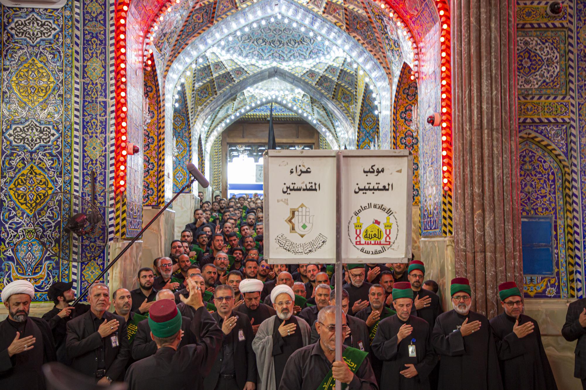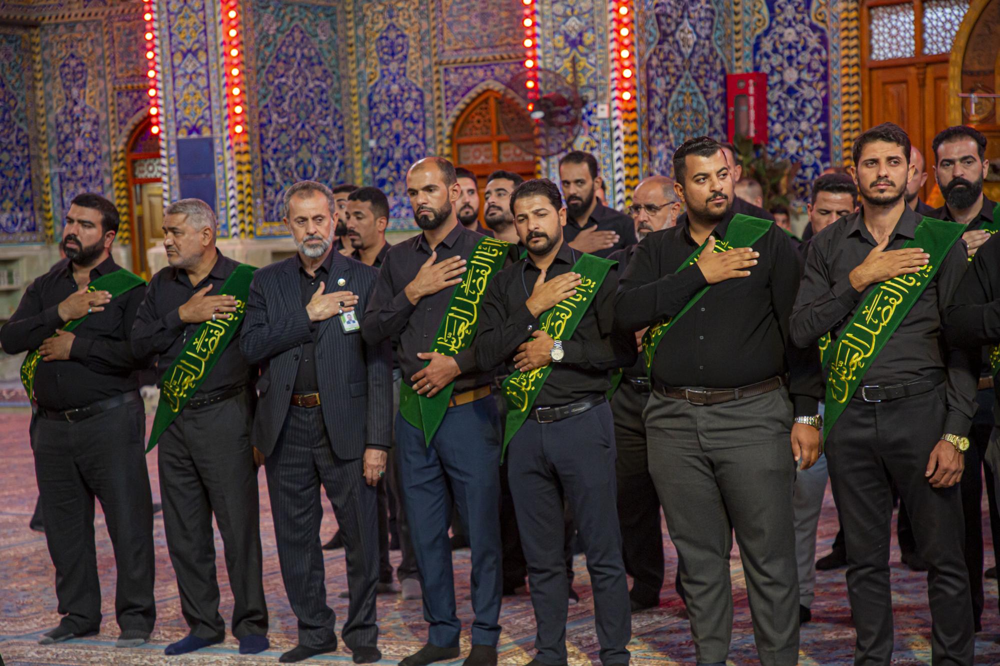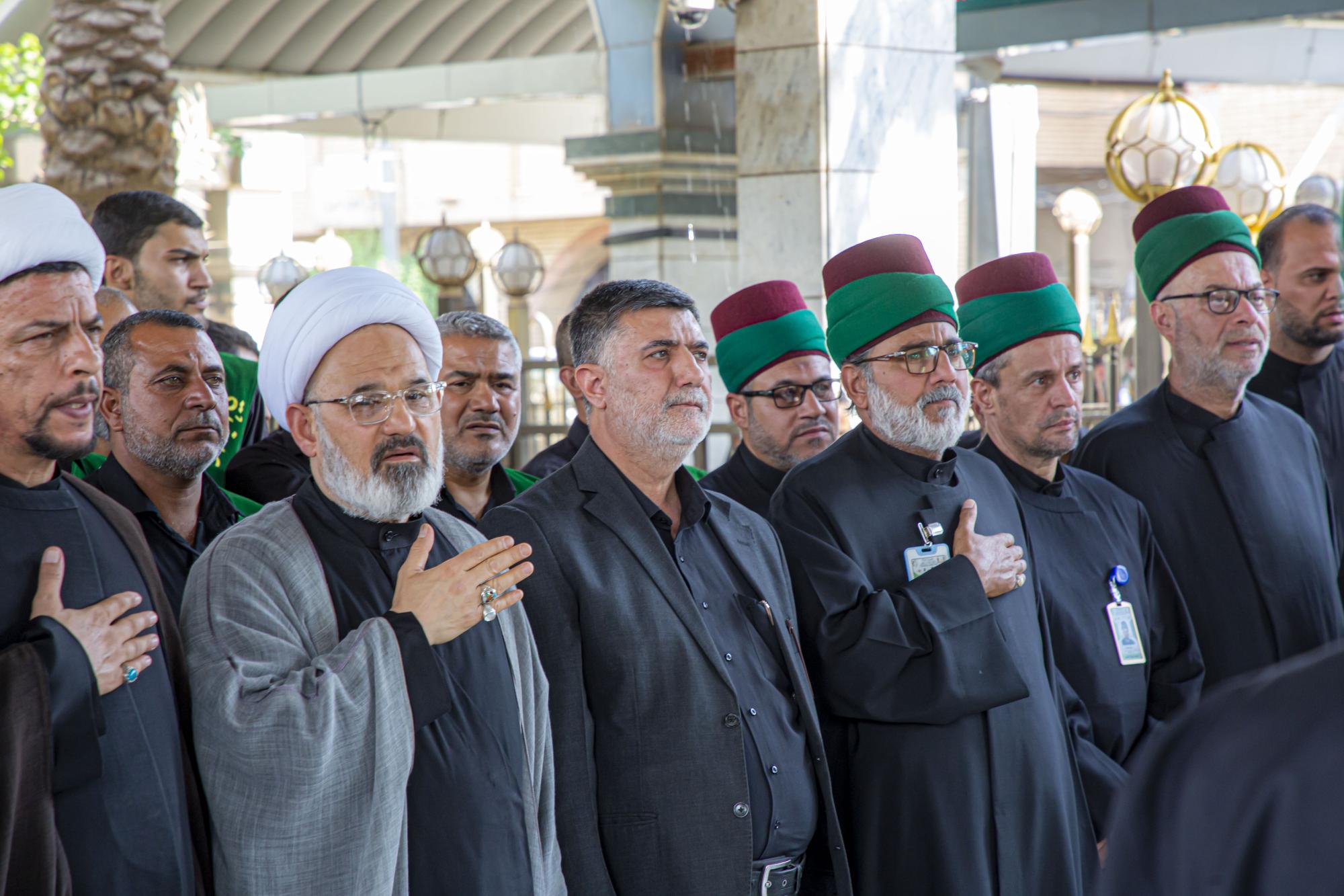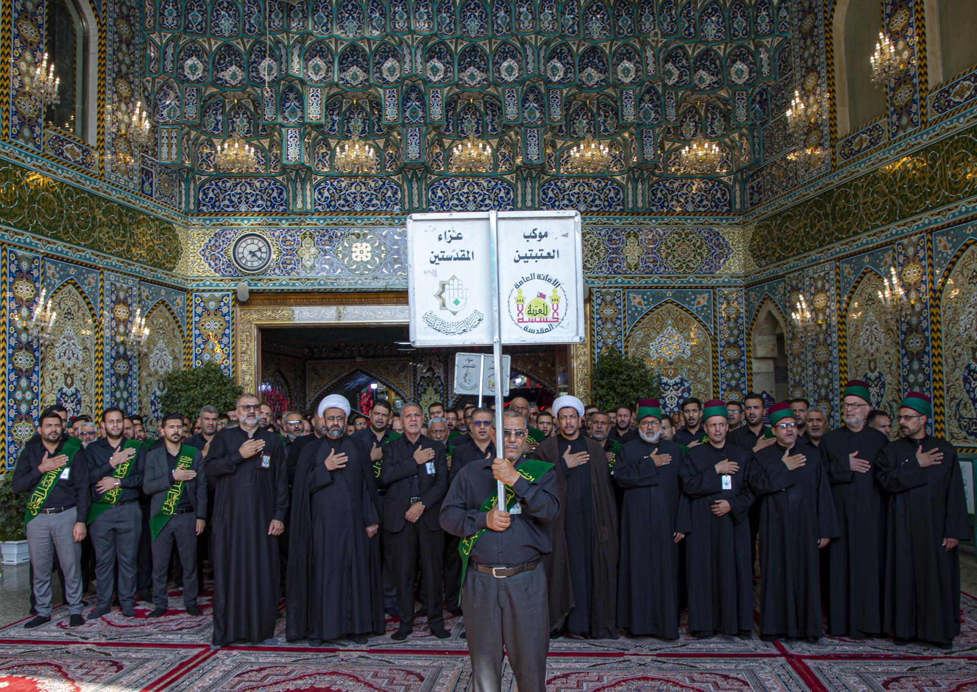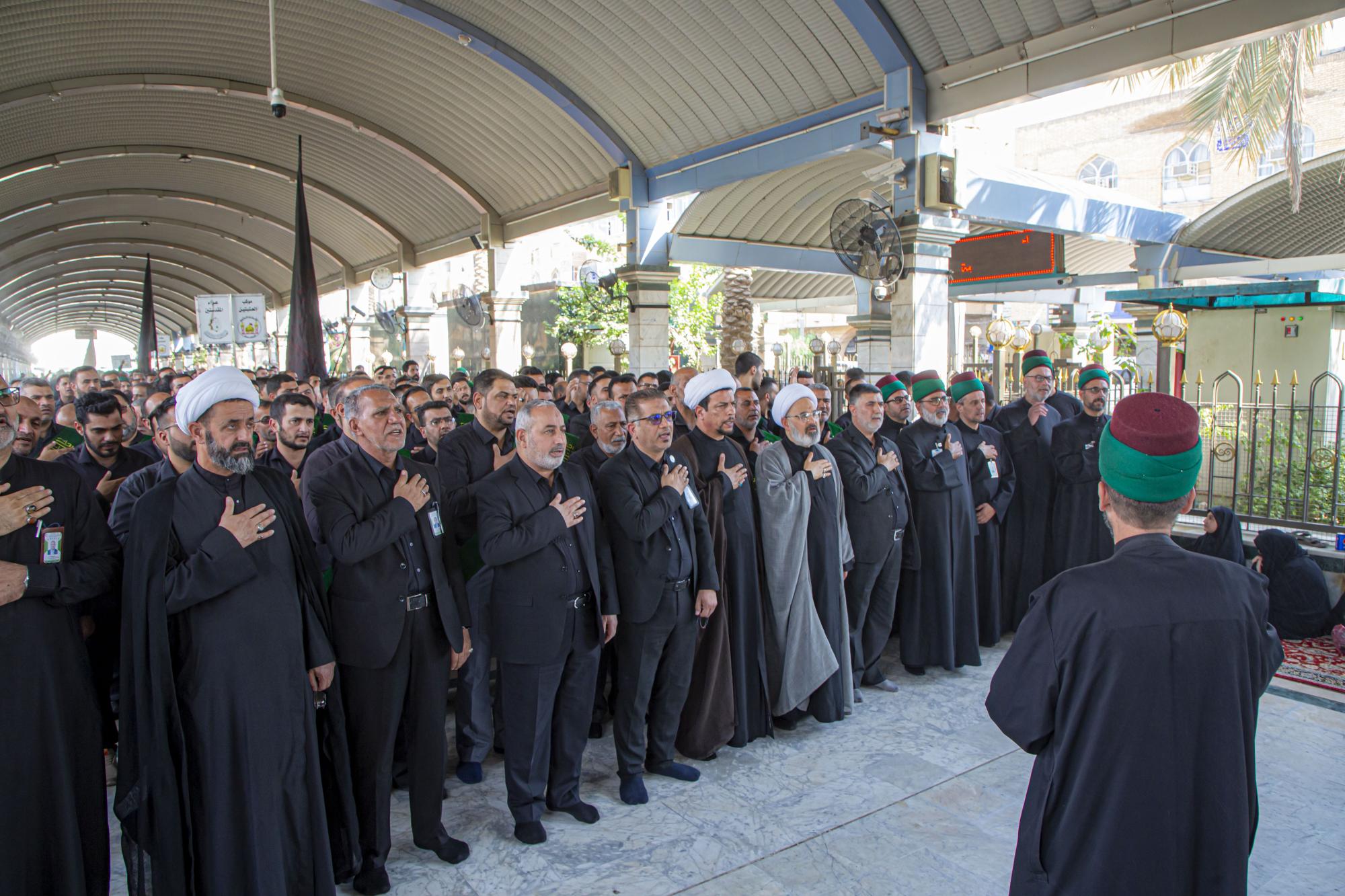 وانطلق الموكب من داخل الصحن الشريف للمولى أبي الفضل العباس (عليه السلام)، بعد أن اصطفّ خدمتُه على شكل مجاميع، وتوجّهوا نحو مرقد سيّد الشهداء الإمام الحسين(عليه السلام)، مروراً بساحة ما بين الحرمين الشريفين مردّدين الكلمات التي جسّدت مشاعر الحزن والألم، وبيّنت مدى وقع هذا المصاب على نفوس محبّي أهل البيت(عليهم السلام).