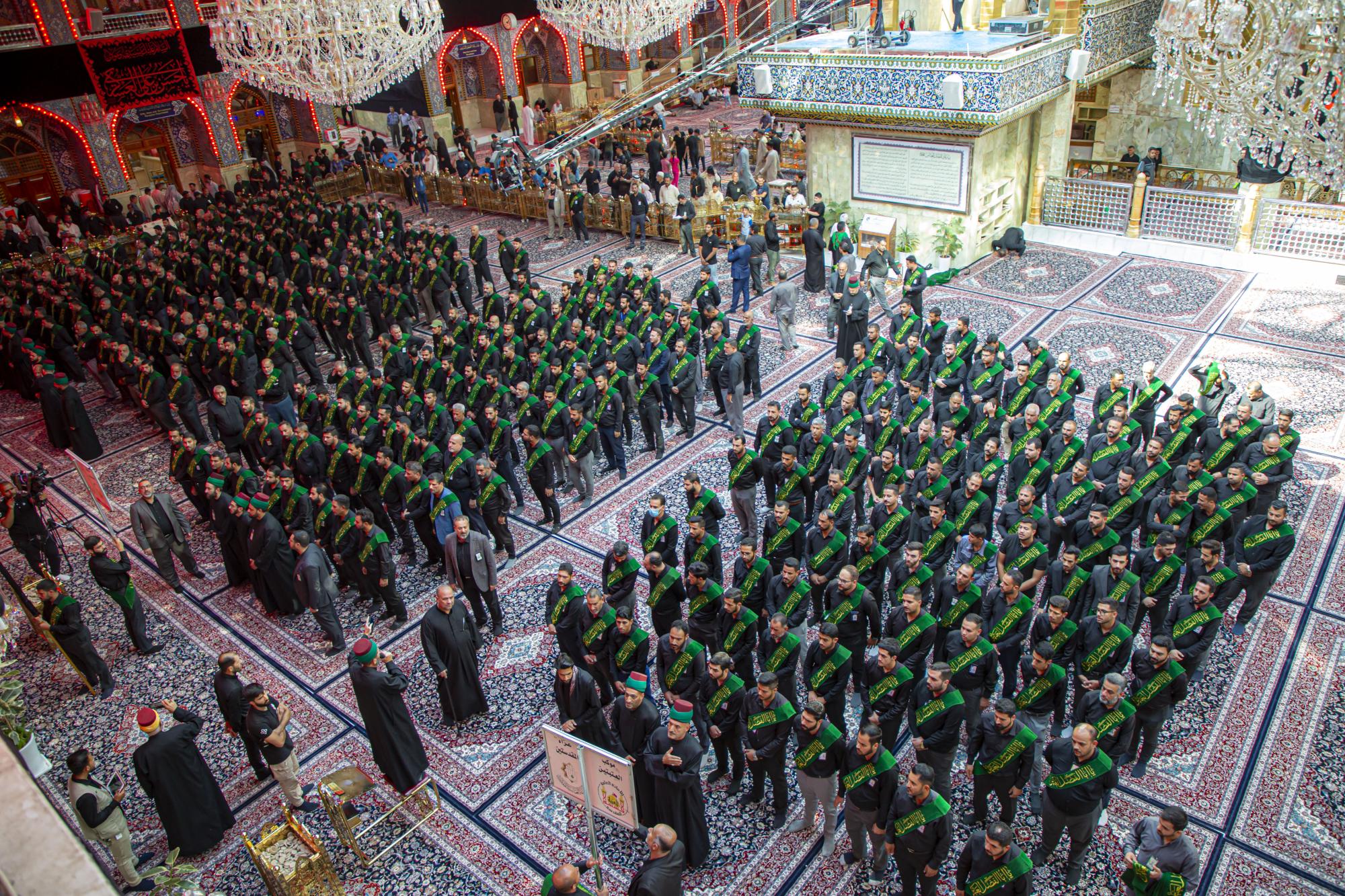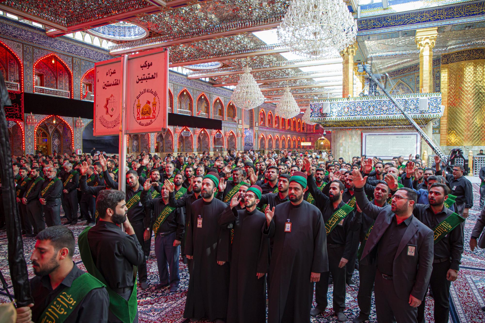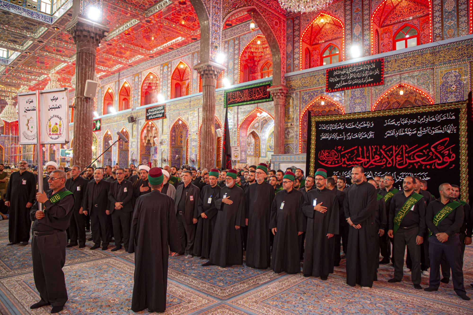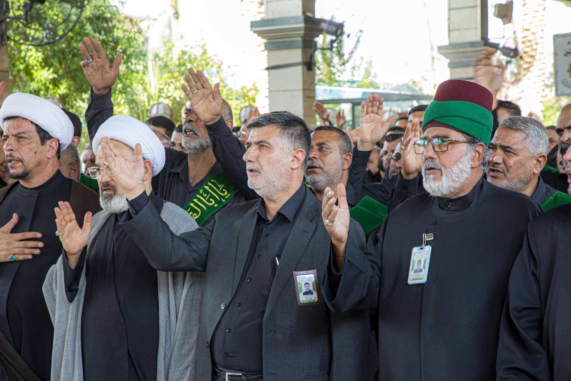 وانطلق الموكب من داخل الصحن الشريف للمولى أبي الفضل العباس (عليه السلام)، بعد أن اصطفّ خدمتُه على شكل مجاميع، وتوجّهوا نحو مرقد سيّد الشهداء الإمام الحسين(عليه السلام)، مروراً بساحة ما بين الحرمين الشريفين مردّدين الكلمات التي جسّدت مشاعر الحزن والألم، وبيّنت مدى وقع هذا المصاب على نفوس محبّي أهل البيت(عليهم السلام).