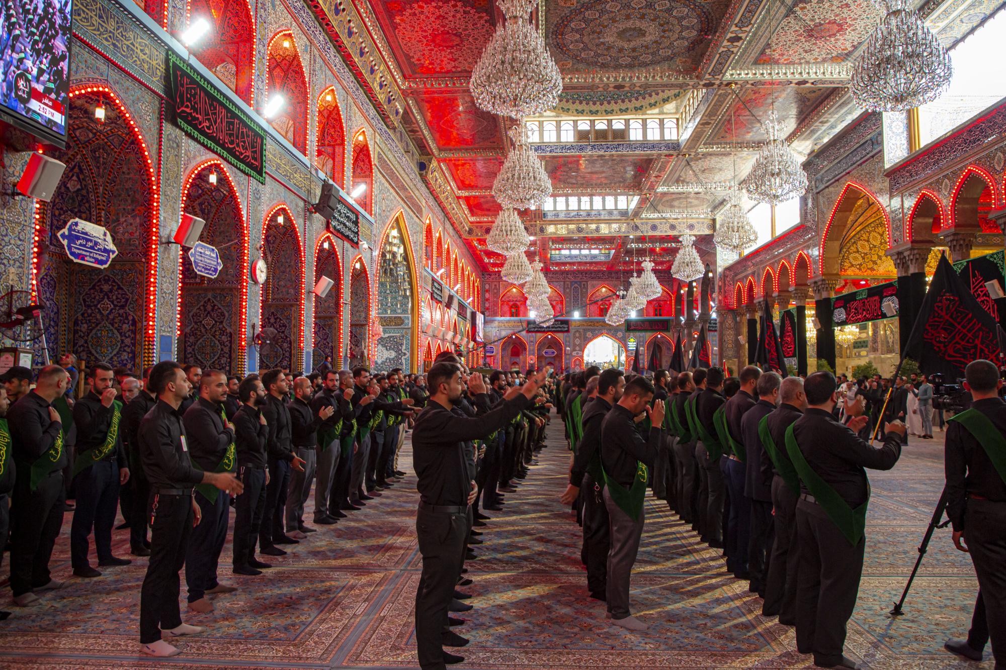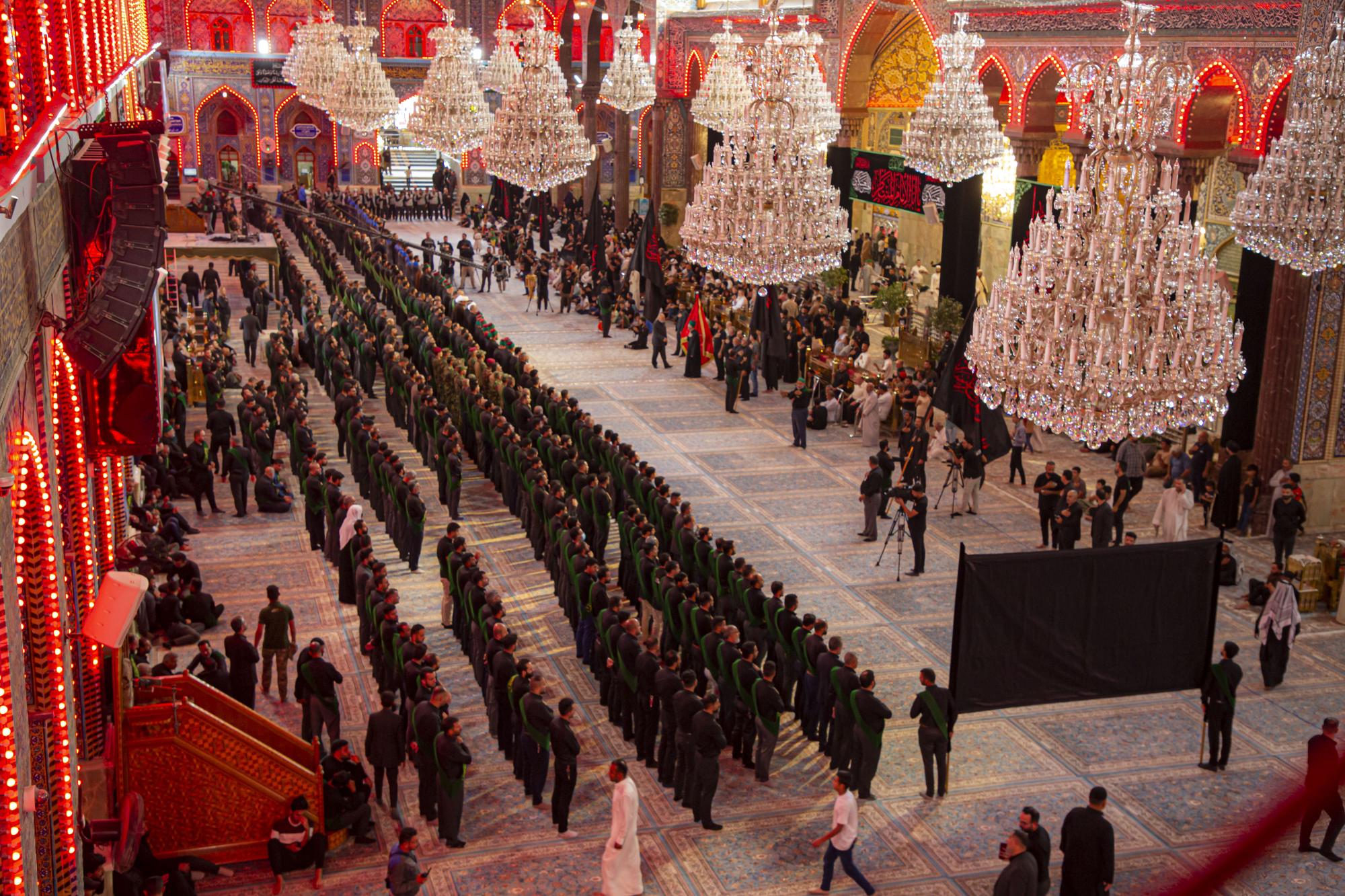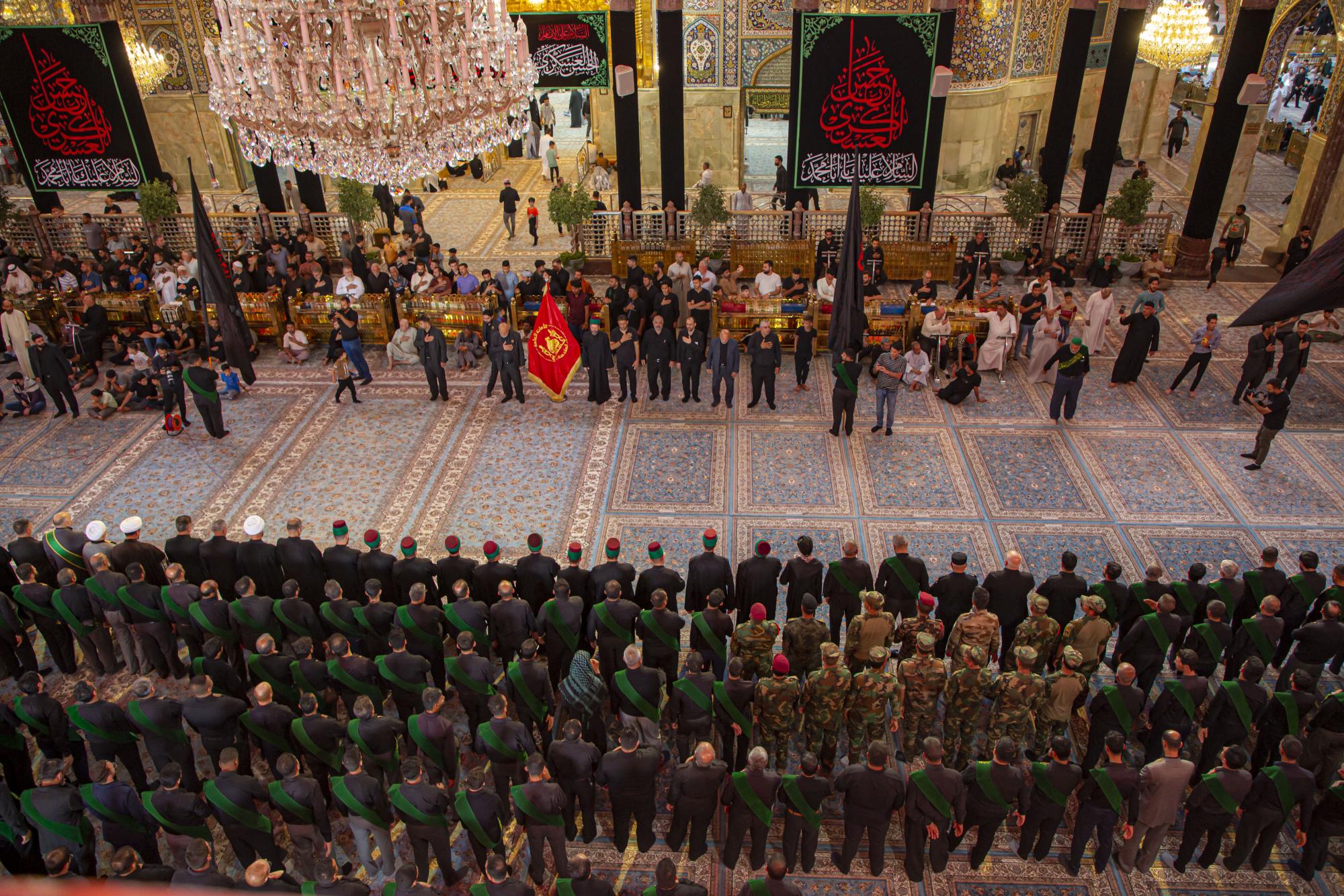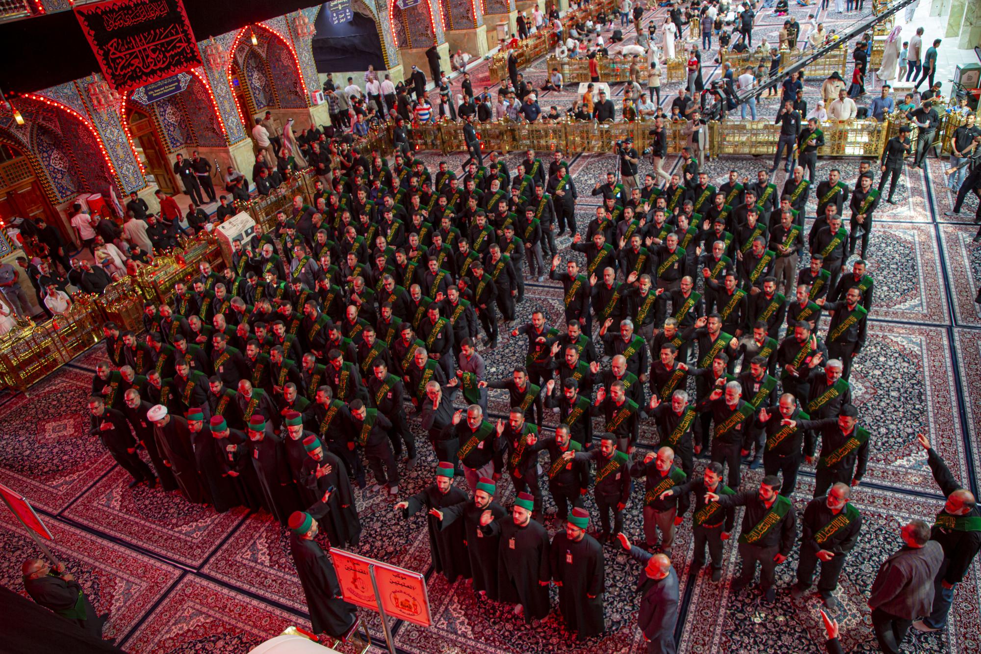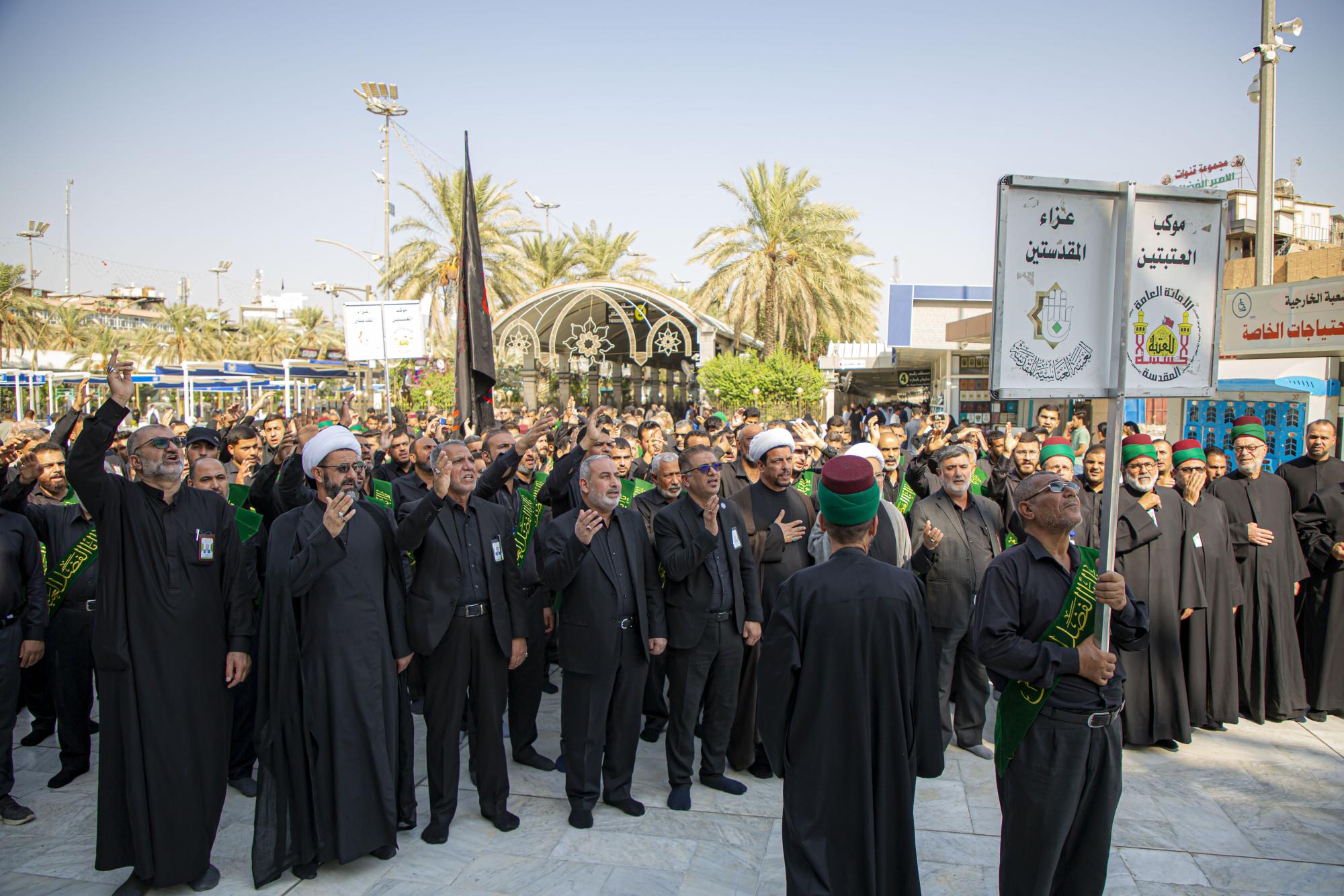 وانطلق الموكب من داخل الصحن الشريف للمولى أبي الفضل العباس (عليه السلام)، بعد أن اصطفّ خدمتُه على شكل مجاميع، وتوجّهوا نحو مرقد سيّد الشهداء الإمام الحسين(عليه السلام)، مروراً بساحة ما بين الحرمين الشريفين مردّدين الكلمات التي جسّدت مشاعر الحزن والألم، وبيّنت مدى وقع هذا المصاب على نفوس محبّي أهل البيت(عليهم السلام).