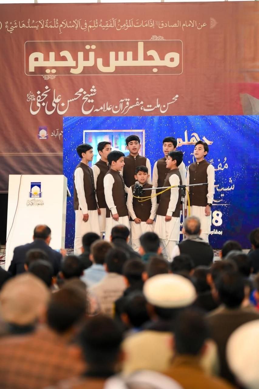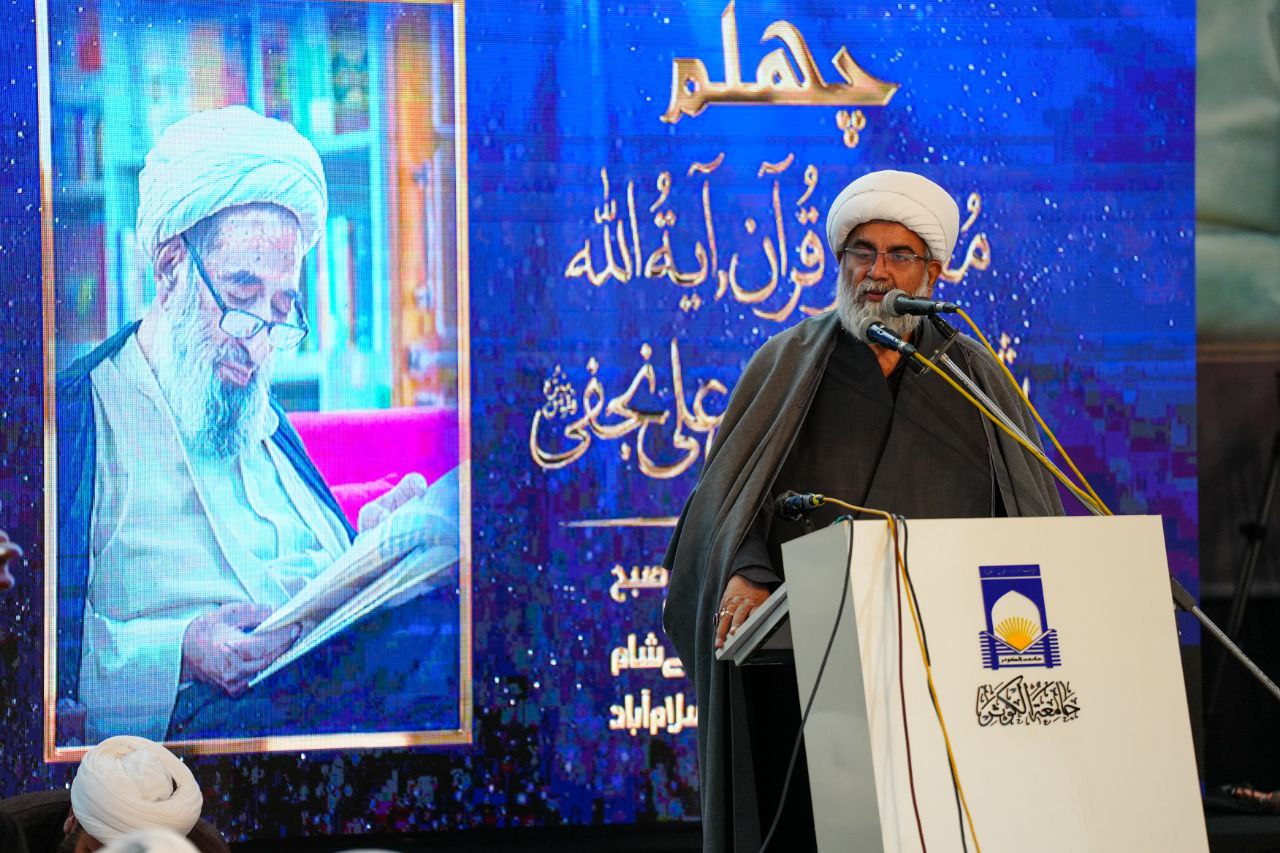 أقيم مجلس تأبين لمرور أربعين يوما لرحيل آية الله "محسن علي النجفي" في مسجد جامعة الكوثر في العاصمة الباكستانية إسلام آباد.