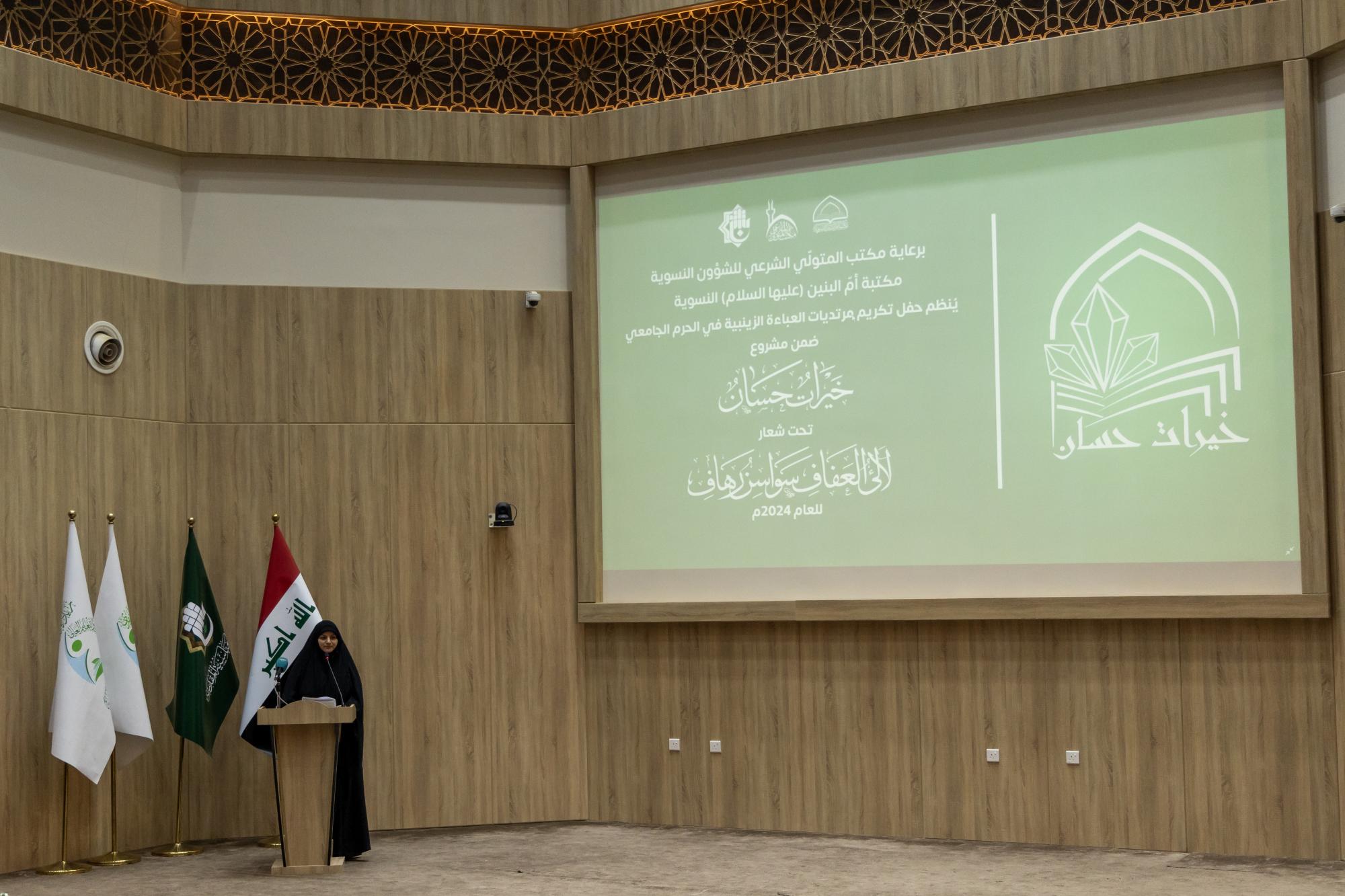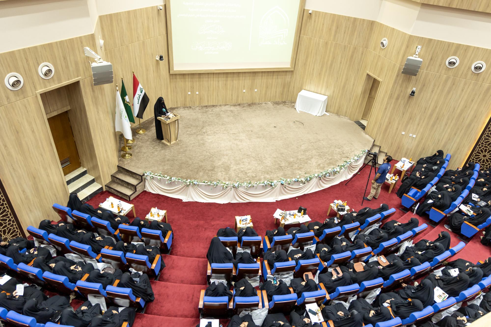 ونظّمت الحفل مكتبة أمّ البنين النسوية في العتبة المقدسة ضمن مشروع (خيرات حسان) وتحت شعار (لآلئ العفاف، سواسن رهاف).
