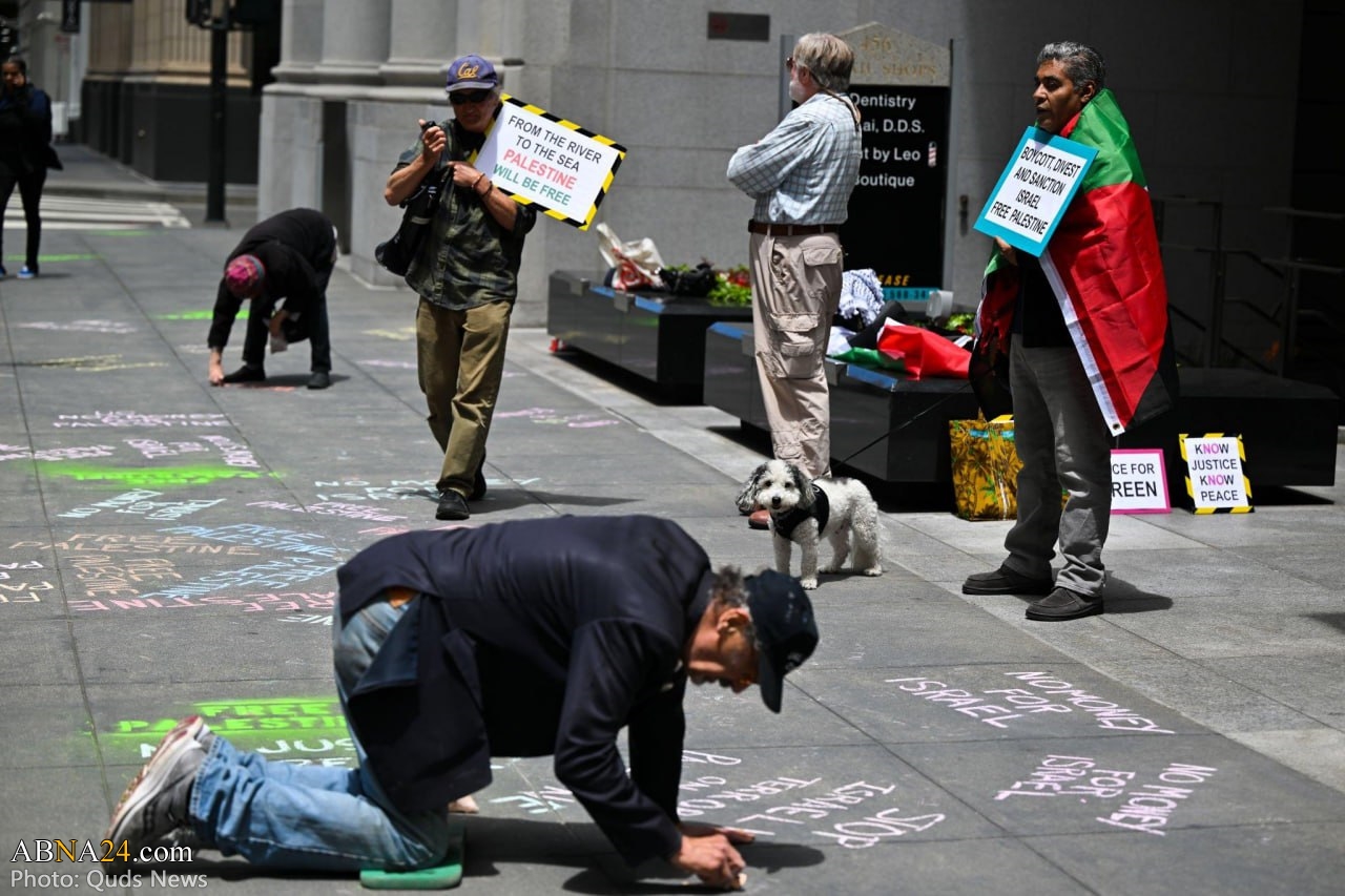وفقا لما أفادته وكالة أهل البيت (ع) للأنباء ـ ابنا ـ تجمع نشطاء امريكيون أمام القنصلية الصهيونية بمدينة "سان فرانسيسكو" في ولاية كاليفورنيا الأمريكية، لغرض التضامن مع الشعب الفلسطيني المظلوم ضد انتهاكات الاحتلال الصهيوني في فلسطين المحتلة .