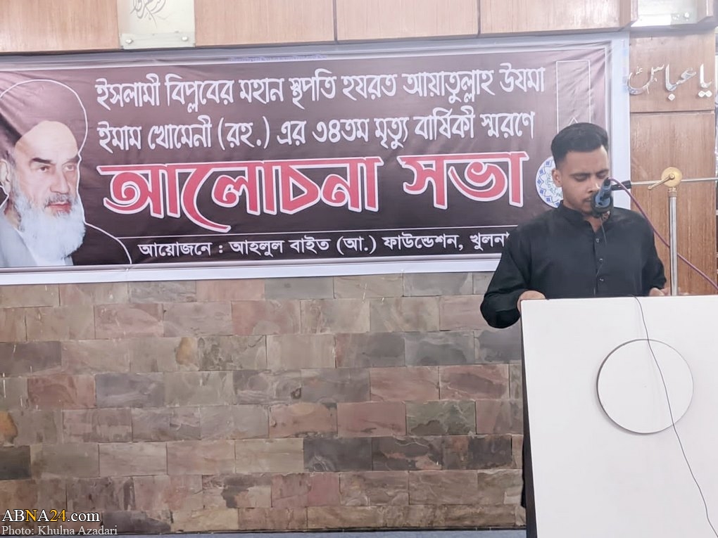 وفقا لما أفادته وكالة أهل البيت (ع) للأنباء ـ ابنا ـ أقيم مجلس تأبين بمناسبة الذكرى السنوية الرابعة والثلاثين لرحيل الإمام الخميني (ره) في مدينة "خولنا" في بنغلاديش، وخطب رجل دين حول هذه المناسبة وتحدث عن شخصية الإمام الراحل وكذلك عن انجازات ثورته المباركة .