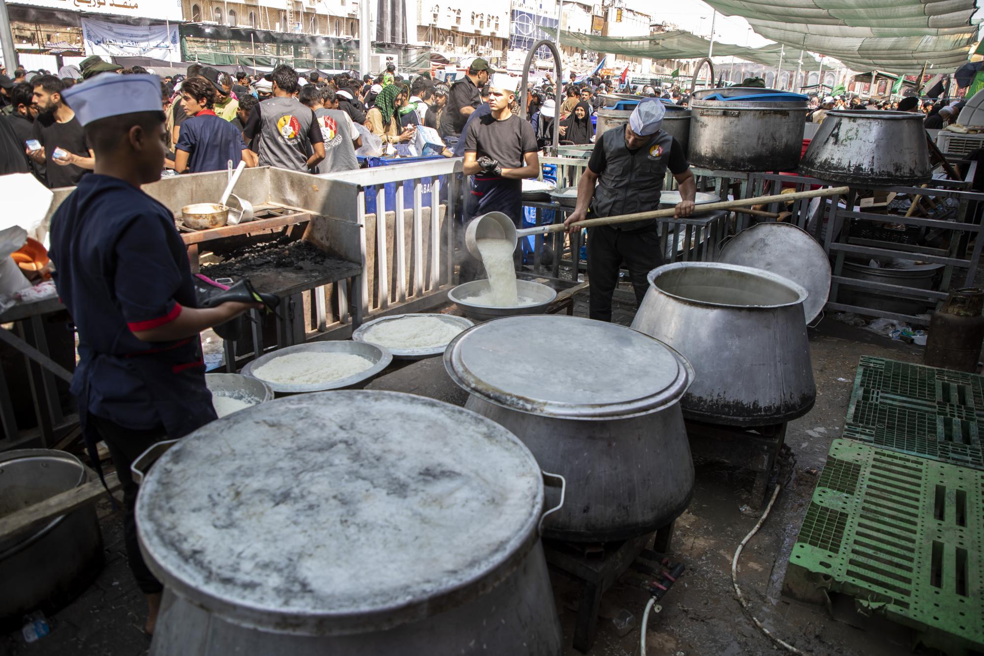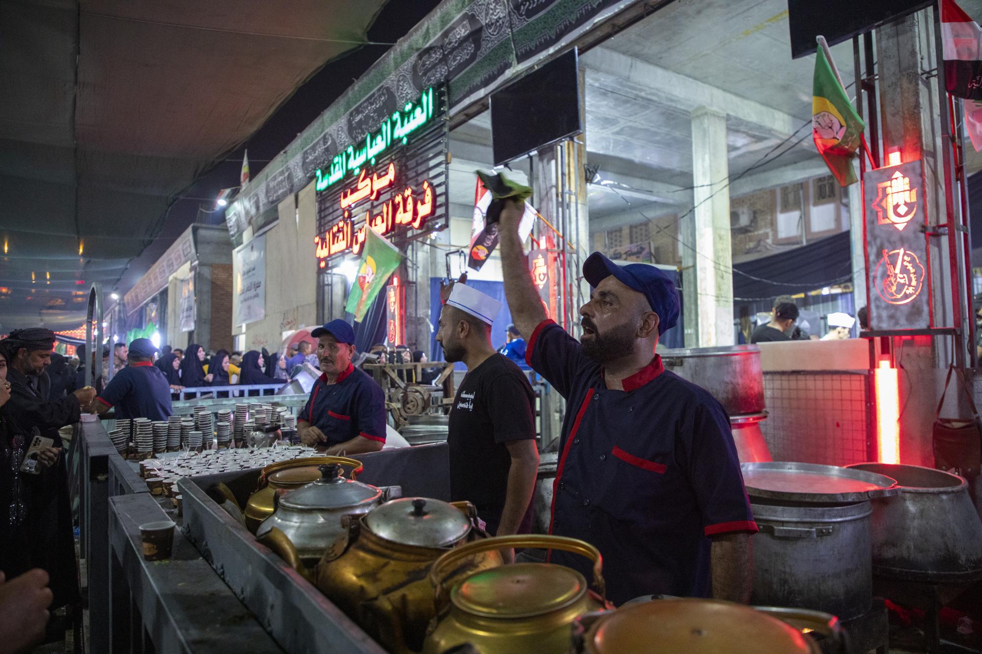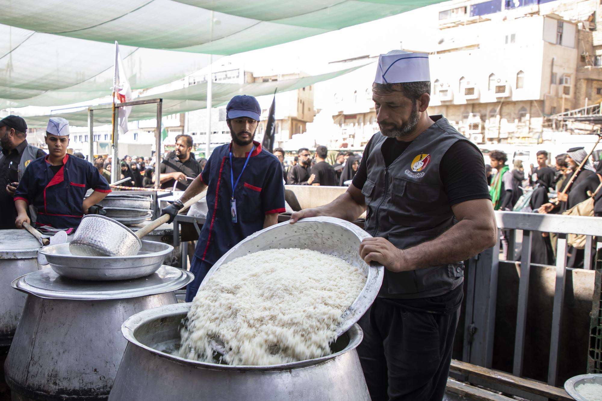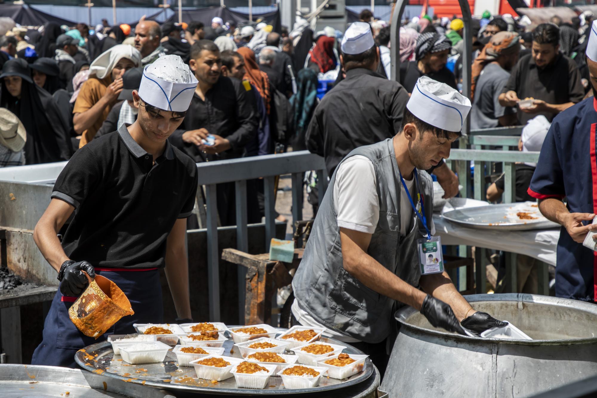 موكب فرقة العباس(ع) يقدم ثلاثة وجبات رئيسية كل يوم لزوار أربعينية الإمام الحسين (ع)+(صور)