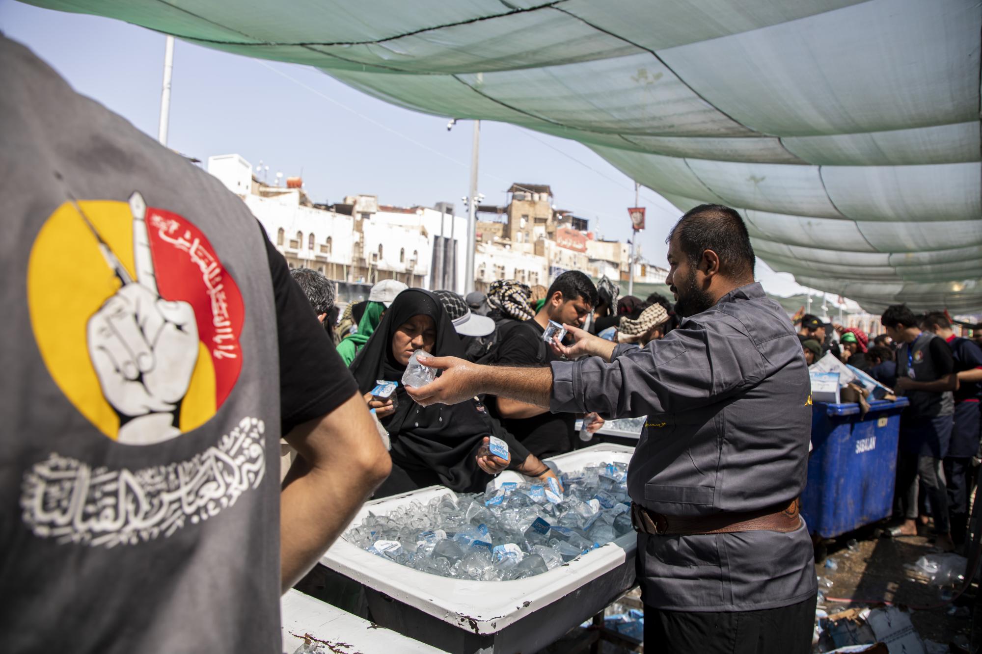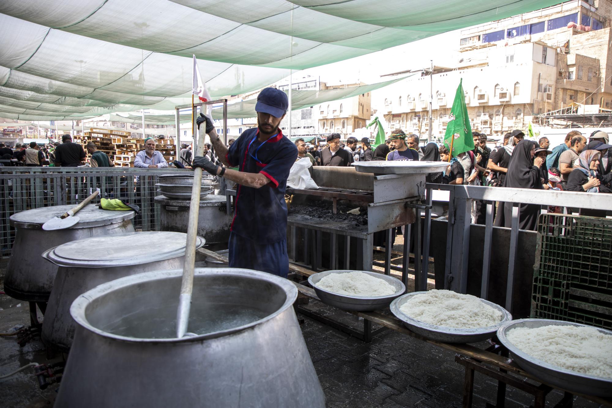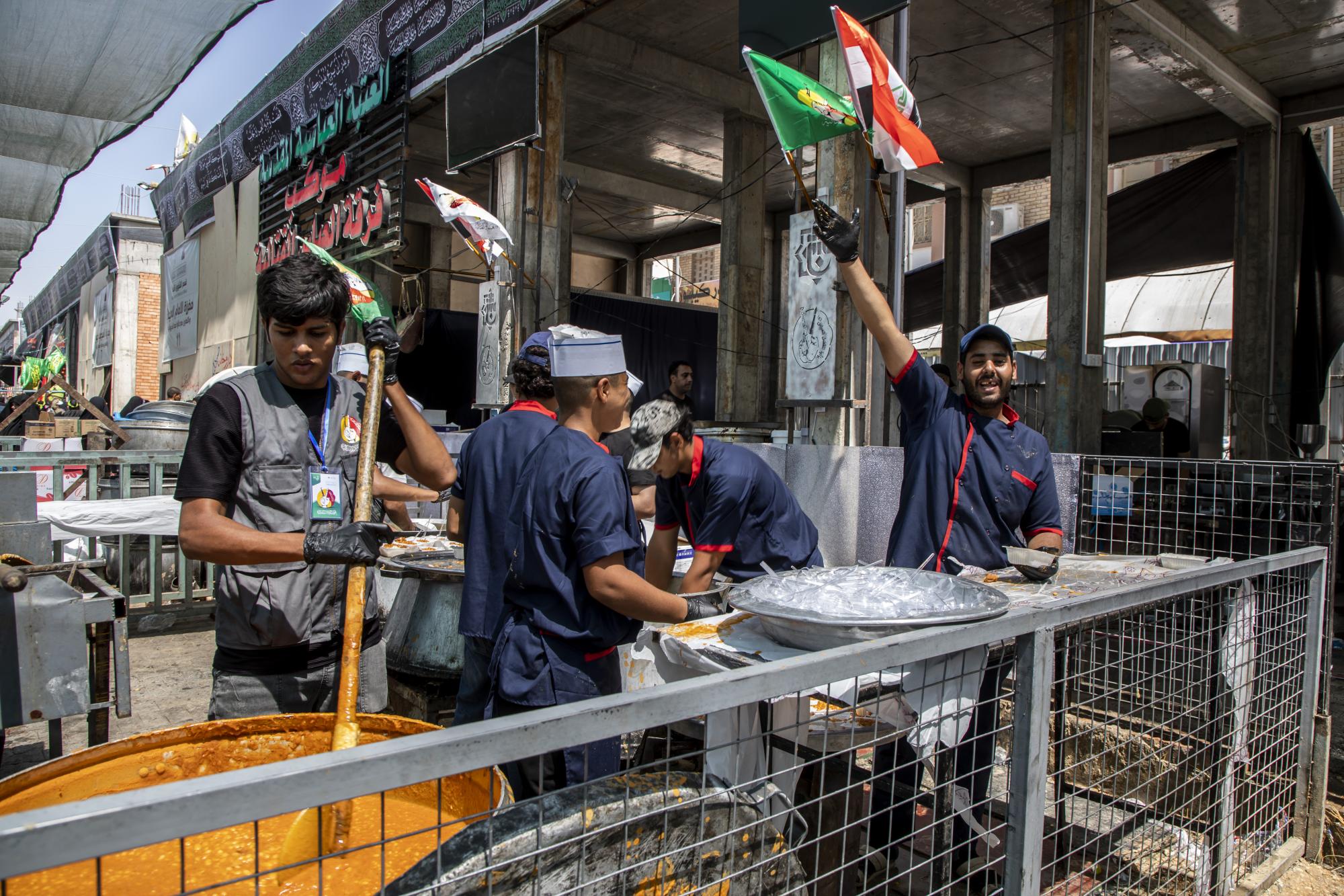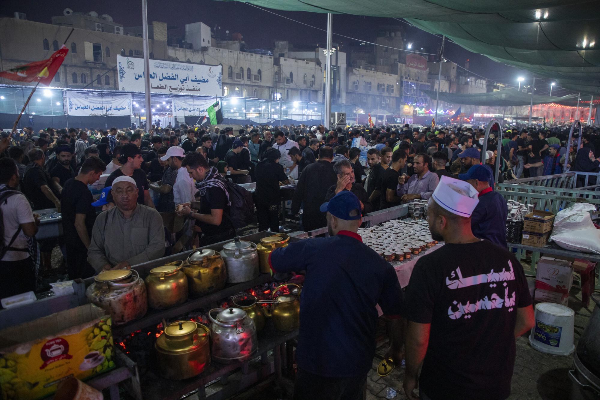 موكب فرقة العباس(ع) يقدم ثلاثة وجبات رئيسية كل يوم لزوار أربعينية الإمام الحسين (ع)+(صور)