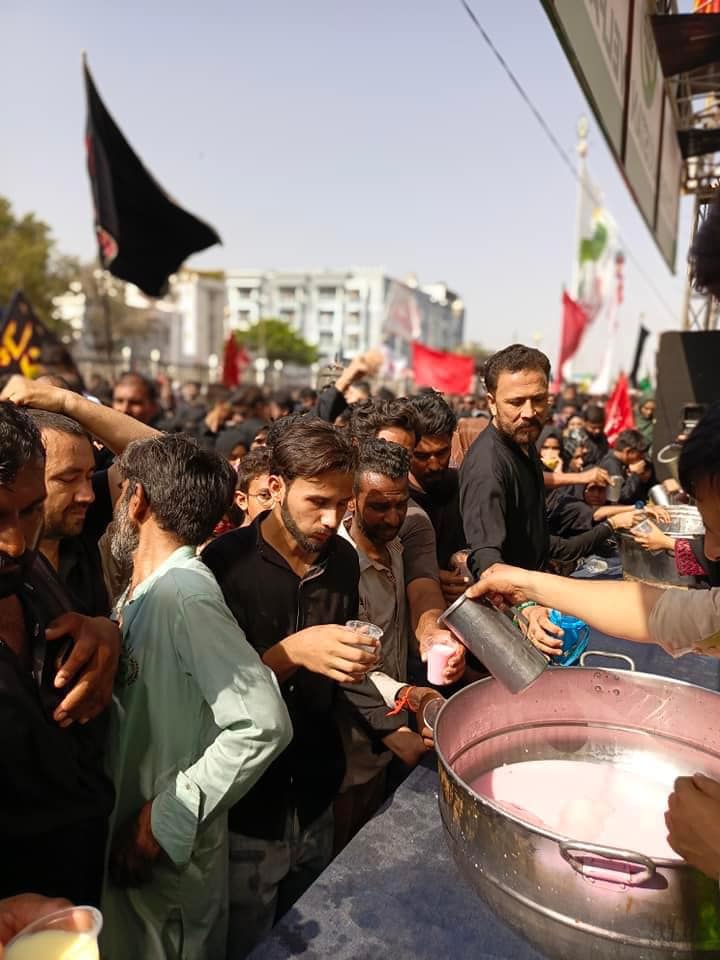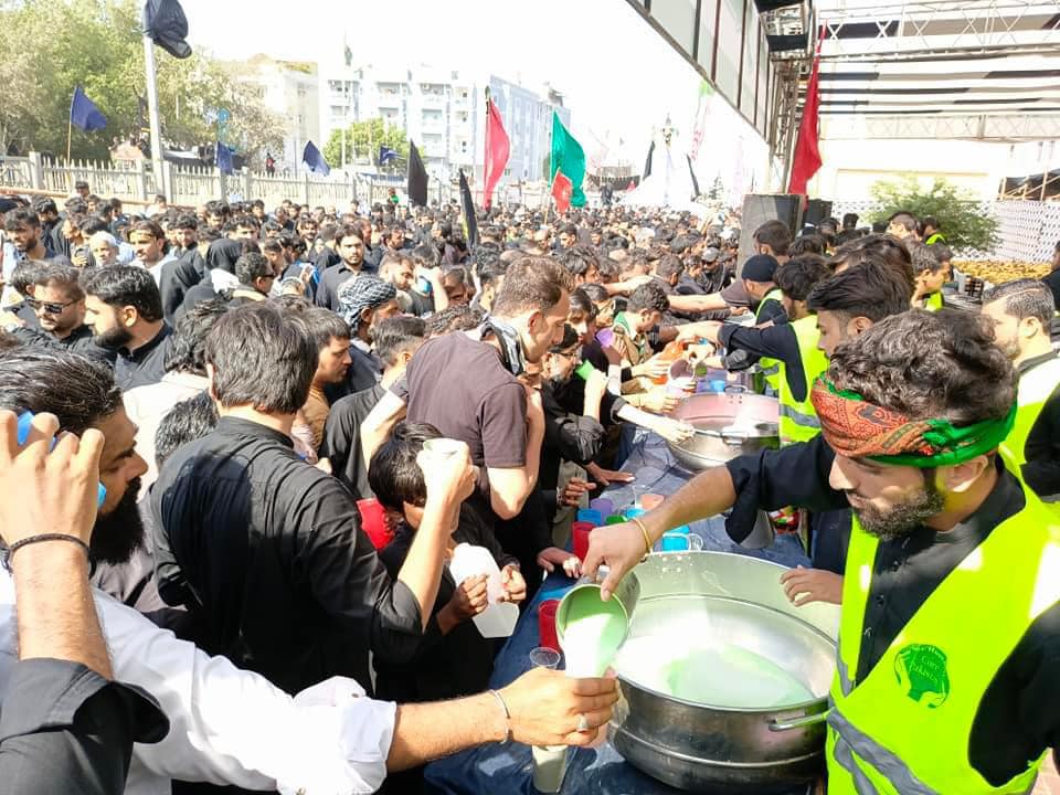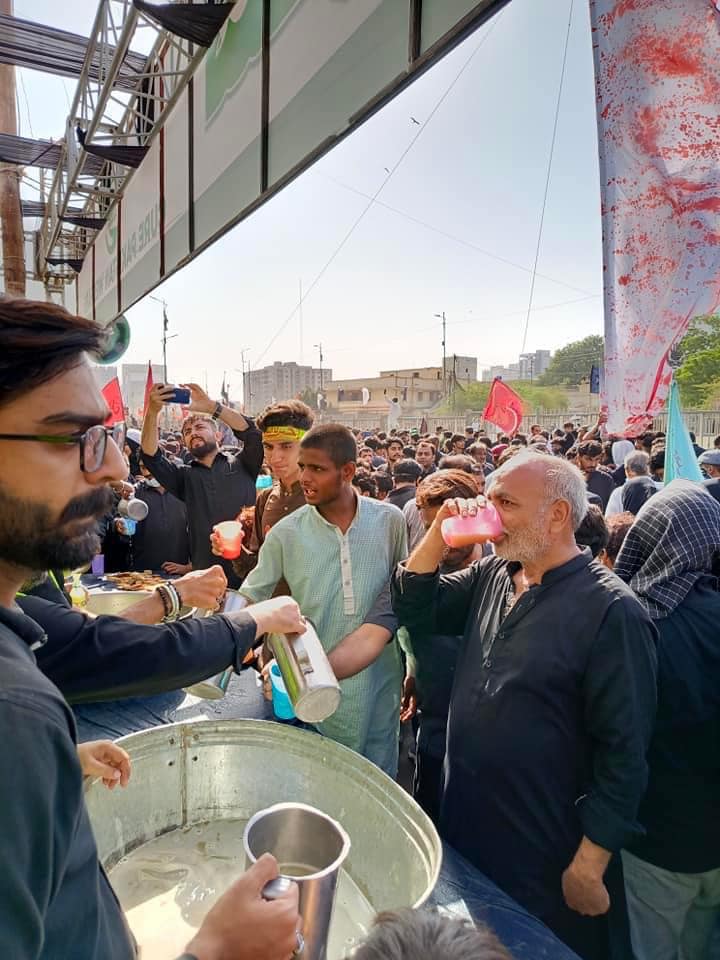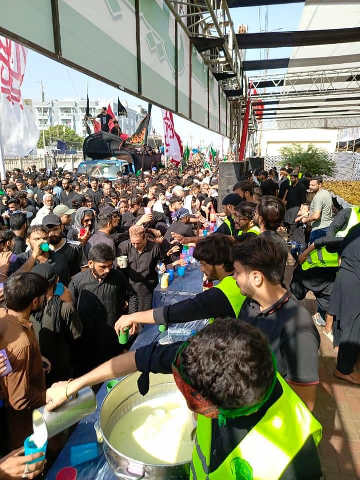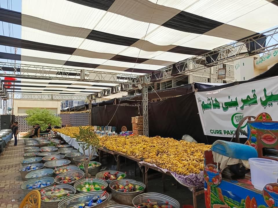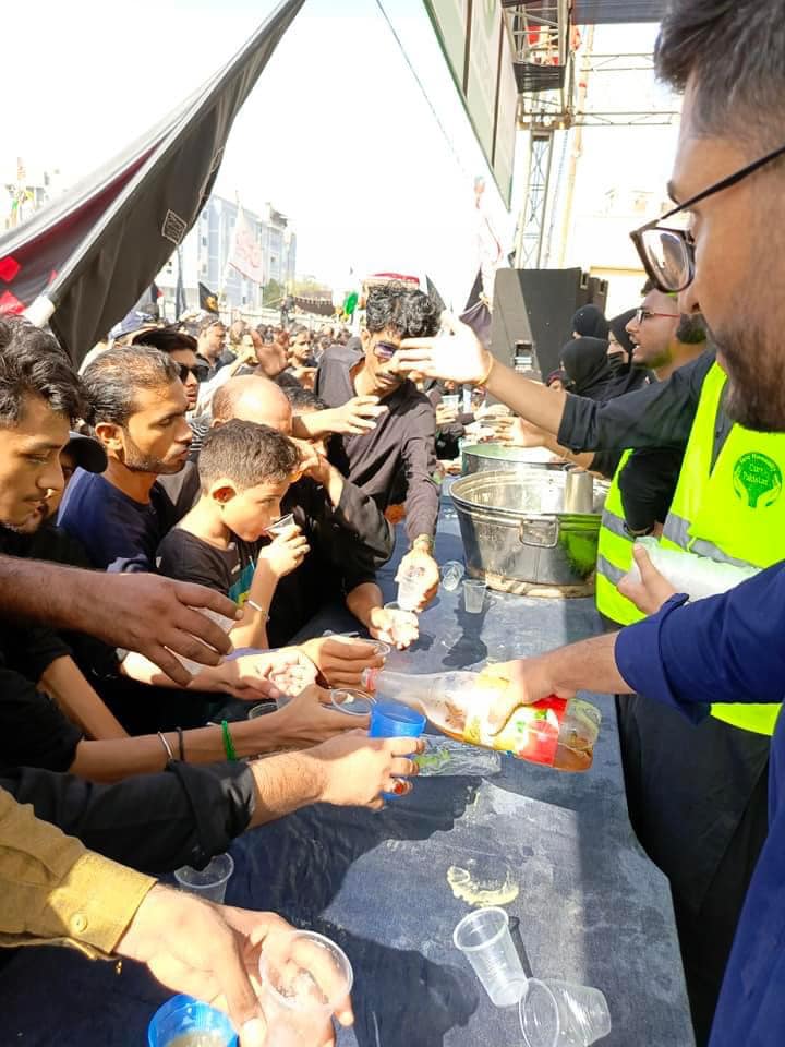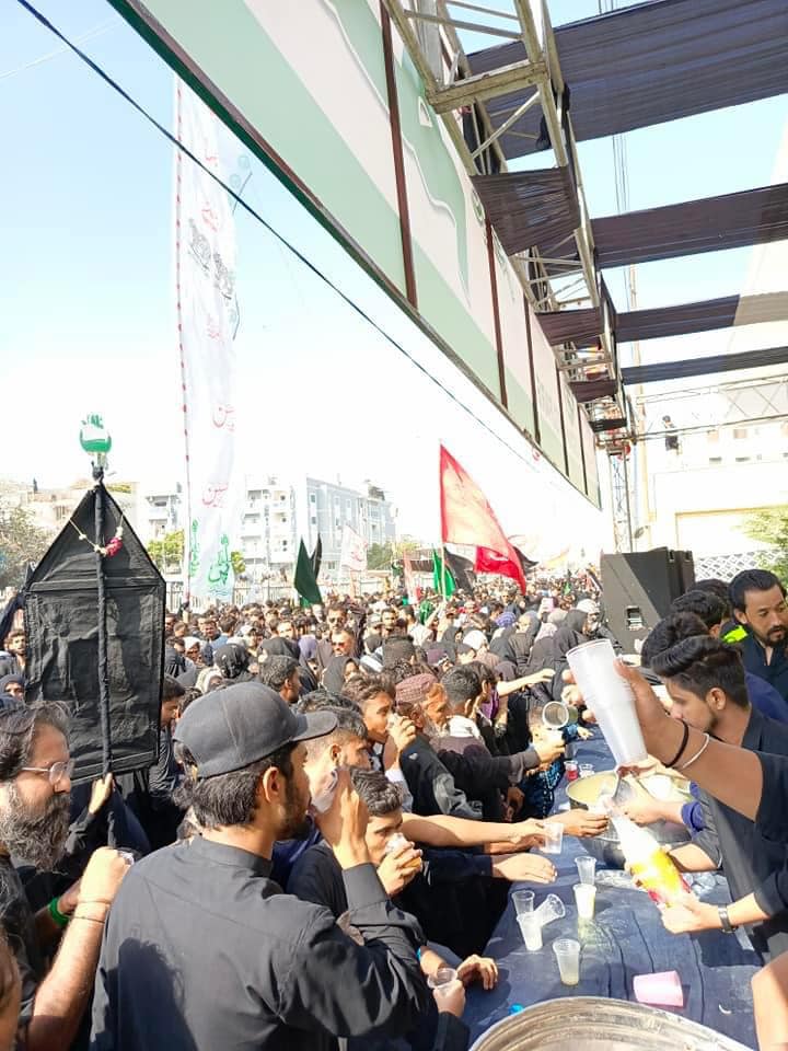 وفقا لما أفادته وكالة أهل البيت (ع) للأنباء ـ أبنا ـ في ذكرى أربعينية الإمام الحسين (ع)، نصب موكب "قمر بني هاشم" خيمة كبيرة في احد شوارع مدينة كراتشي الباكستانية، وقدمت مختلف العصائر اللذيذة منها القصب السكري والطلح .