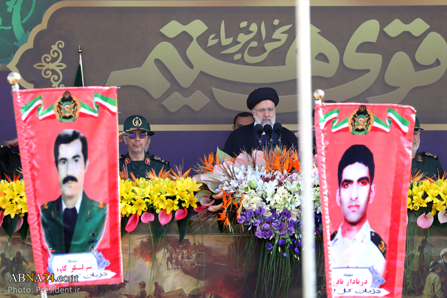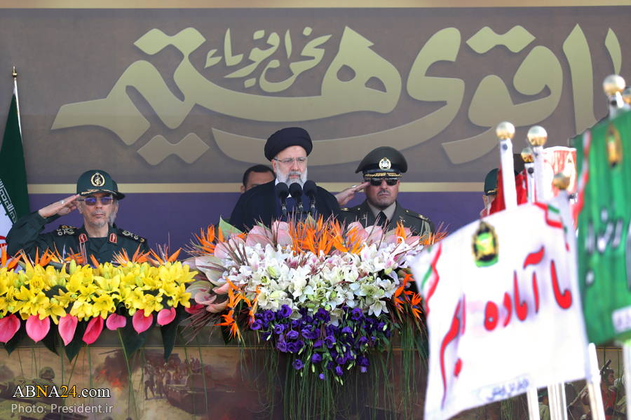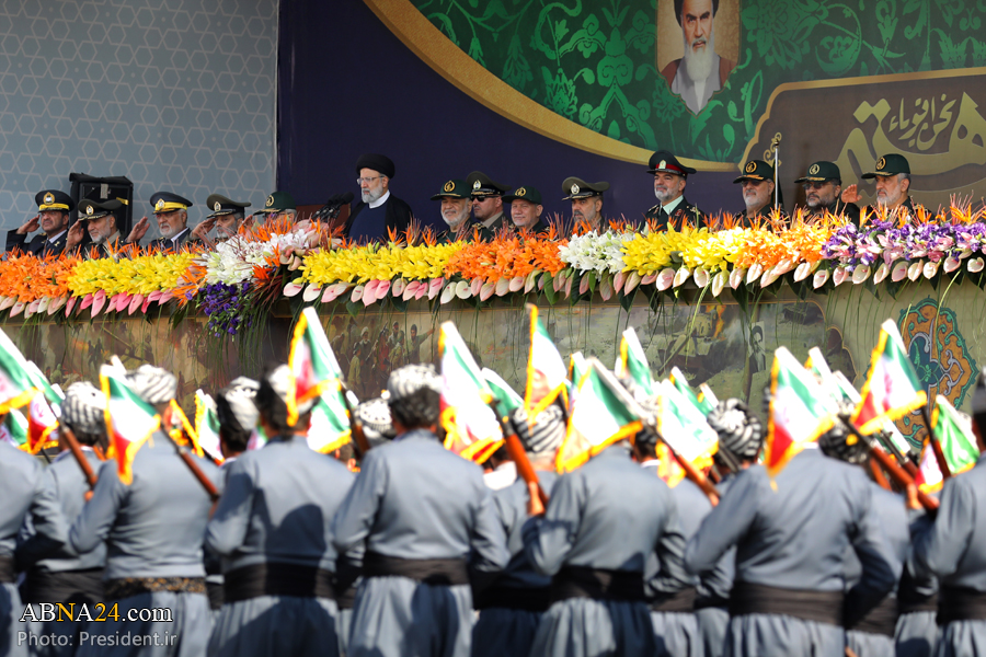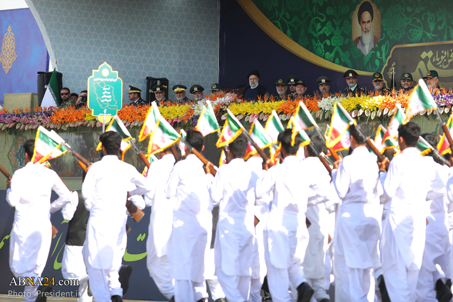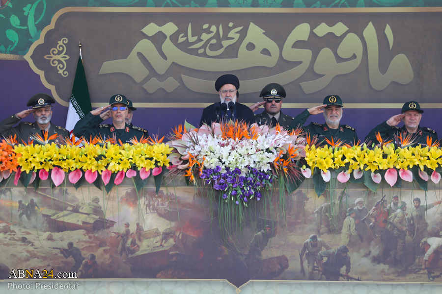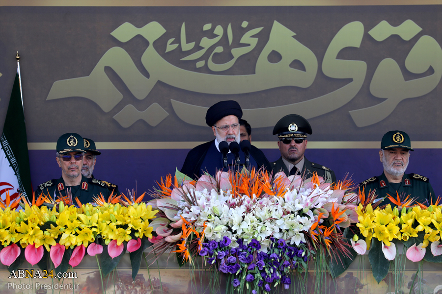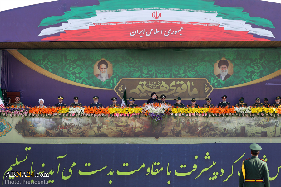 وفقا لما أفادته وكالة أنباء أهل البيت (ع) الدولية ــ أبنا ــ شارك الرئيس الايراني حجة الاسلام والمسلمين السيد "ابراهيم رئيسي" في مراسم استعراض عسكري أقيم بالعاصمة "طهران" وتم استعراض أنواع الأسلحة مع مشاركة كافة صنوف القوات العسكرية، كما ألقى الرئيس "رئيسي" كلمة بهذه المناسبة .