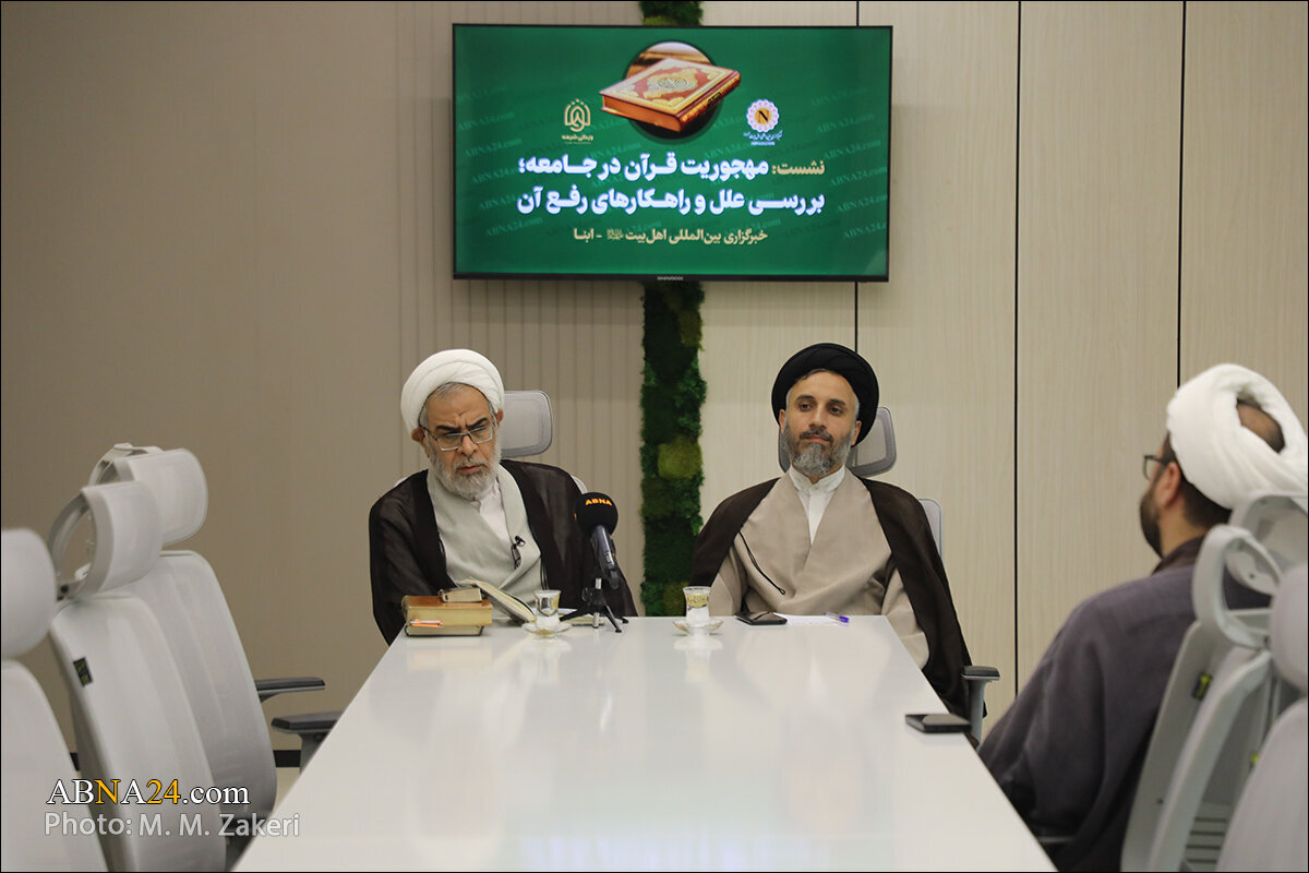 وفقا لما أفادته وكالة أنباء أهل البيت (ع) الدولية ــ أبنا ـ انعقدت ندوة علمية تحت عنوان "إتخاذ القرآن مهجورا في المجتمع، أسباب ومعالجتها برعاية وكالة أبنا بالتعاون مع موسوعة ويكي شيعية، في قاعة المؤتمرات الوكالة، وناقش حجة الإسلام والمسلمين الشيخ "مهدي رضائي الطهراني"، مدير مجموعة القرآن والحديث في قاعدة ويكي بيانات الشيعة، وحجة الإسلام والمسلمين "السيد محمد مهدي رضائي موسوي"، الباحث في قاعدة بيانات ويكي الشيعة أسباب اتخاذ القرآن الكريم مهجورا في المجتمع وسبل معالجتها .