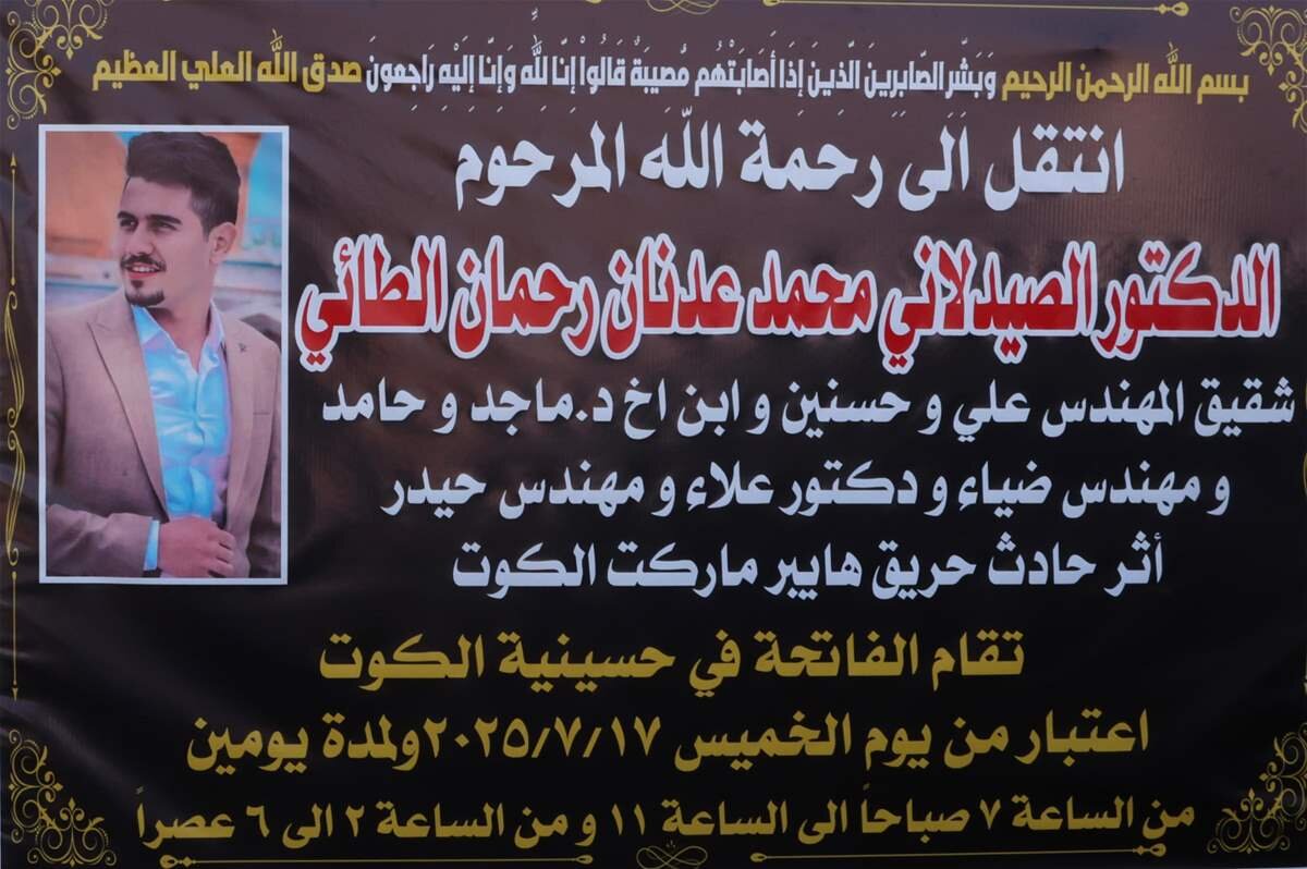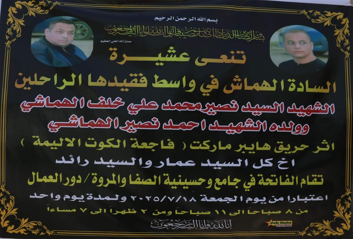 وفقا لما أفادته وكالة أنباء أهل البيت (ع) الدولية ــ أبنا ـ قدم مستشار الأمن القومي قاسم الأعرجي، واجب العزاء إلى ذوي شهداء حادث حريق الهايبر ماركت في مدينة الكوت بمحافظة .