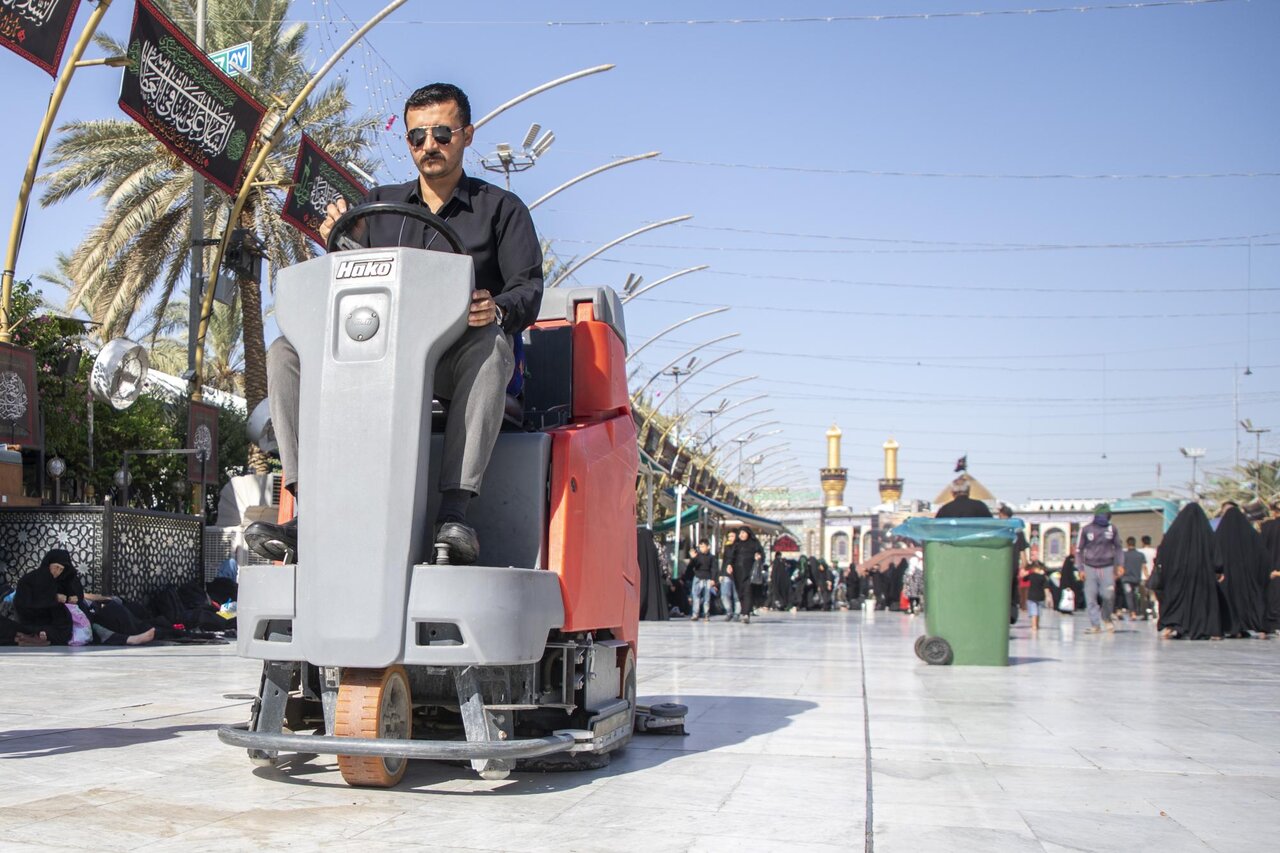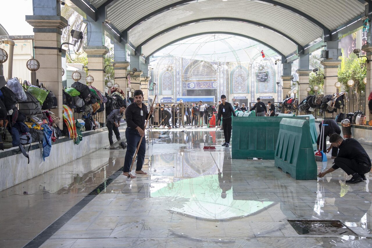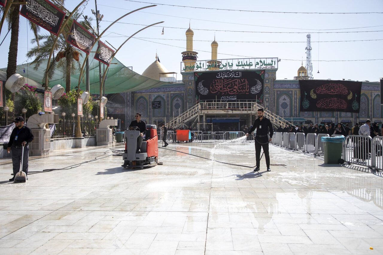 وفقا لما أفادته وكالة أنباء أهل البيت (ع) الدولية ــ أبنا ــ تواصل ملاكات قسم بين الحرمين الشريفين في العتبة العباسية المقدسة، تنفيذ حملة تنظيف المنطقة الواقعة بين المرقدين الطاهرين وتهيئتها، بعد انتهاء مراسم زيارة الأربعين. وشملت الحملة غسل أرضيات المرمر وجلي المساحات الممتدة في منطقة بين الحرمين، باستعمال معدات حديثة ومواد تنظيف خاصة، للحفاظ على نظافة المكان وتهيئة بيئة صحية وآمنة للزائرين.
