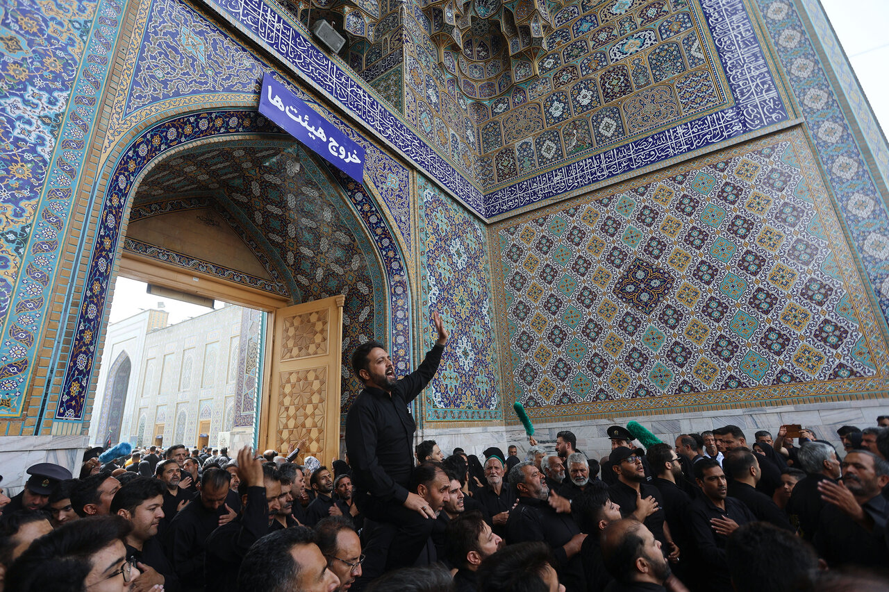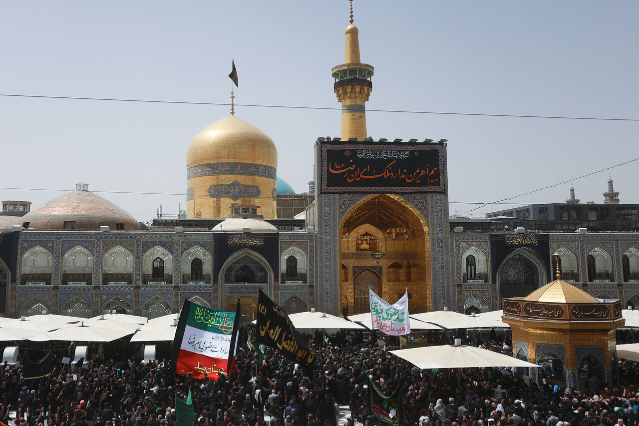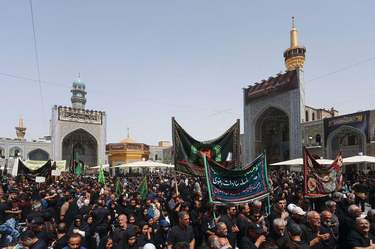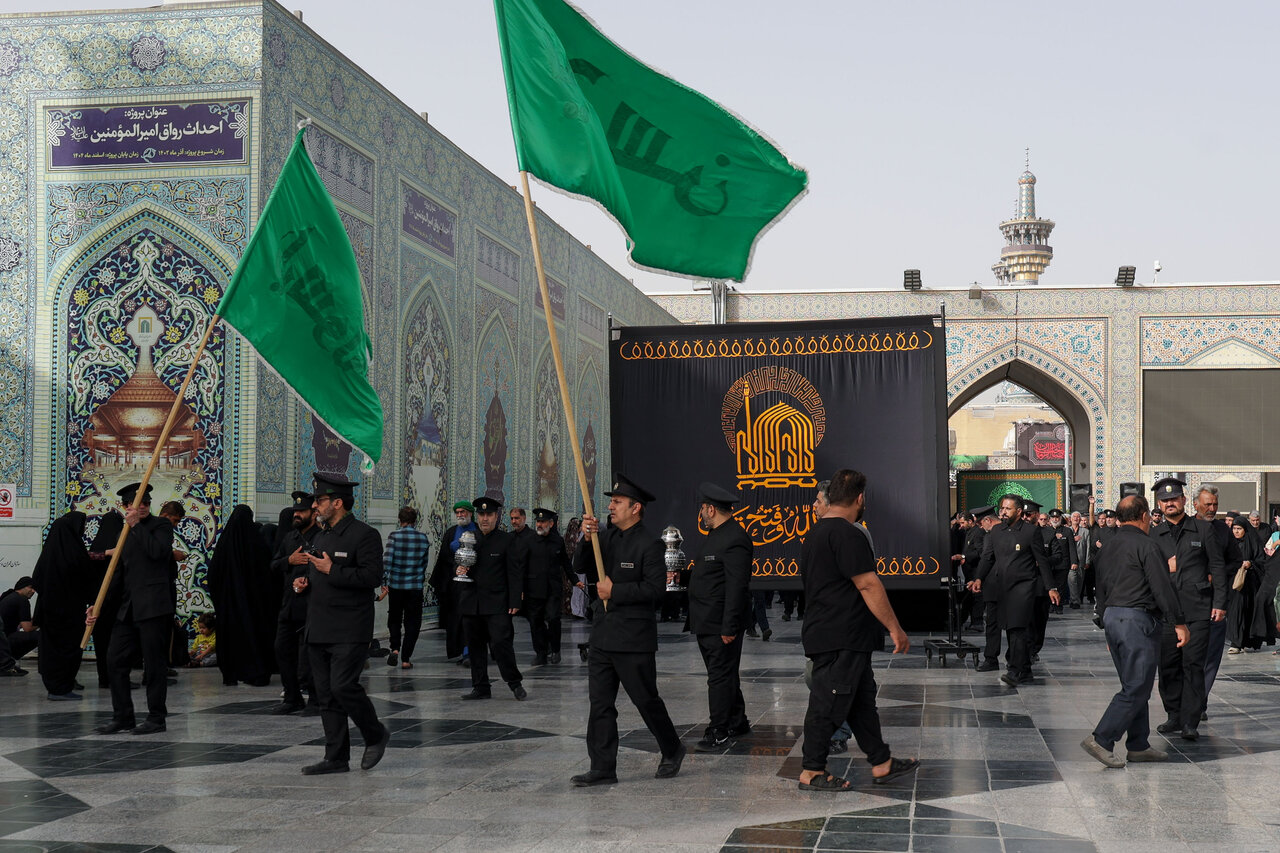 وفقا لما أفادته وكالة أنباء أهل البيت (ع) الدولية ــ أبنا ــ أقيمت مراسم عزاء في صحون الحرم الرضوي الشریف بمناسبة ذكرى استشهاد الإمام الرضا (ع)، شارکت فیها المواکب الدينية من كافة أنحاء البلاد.