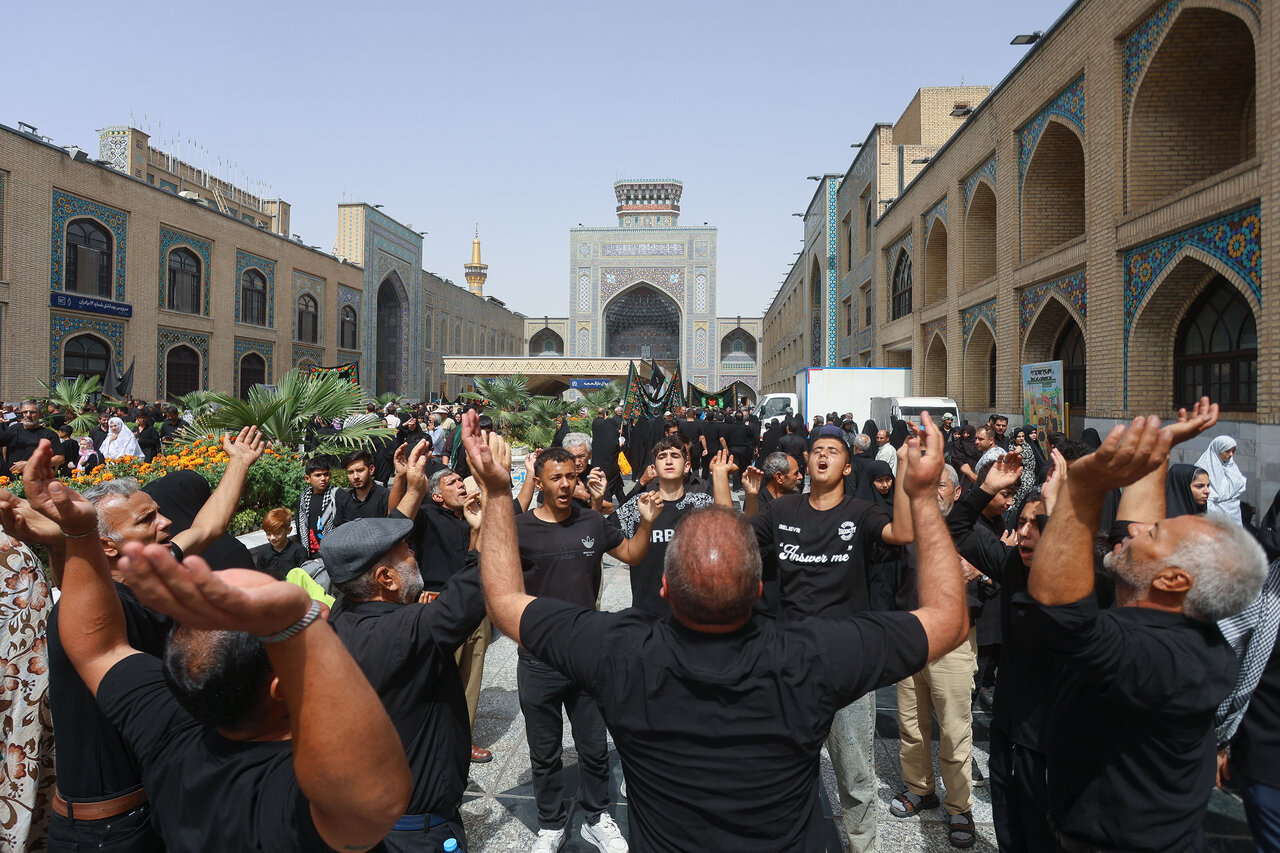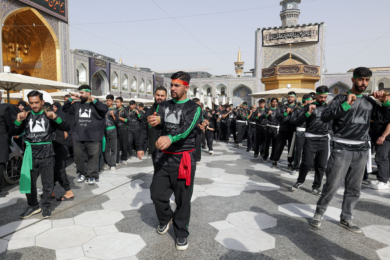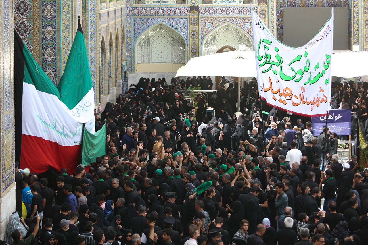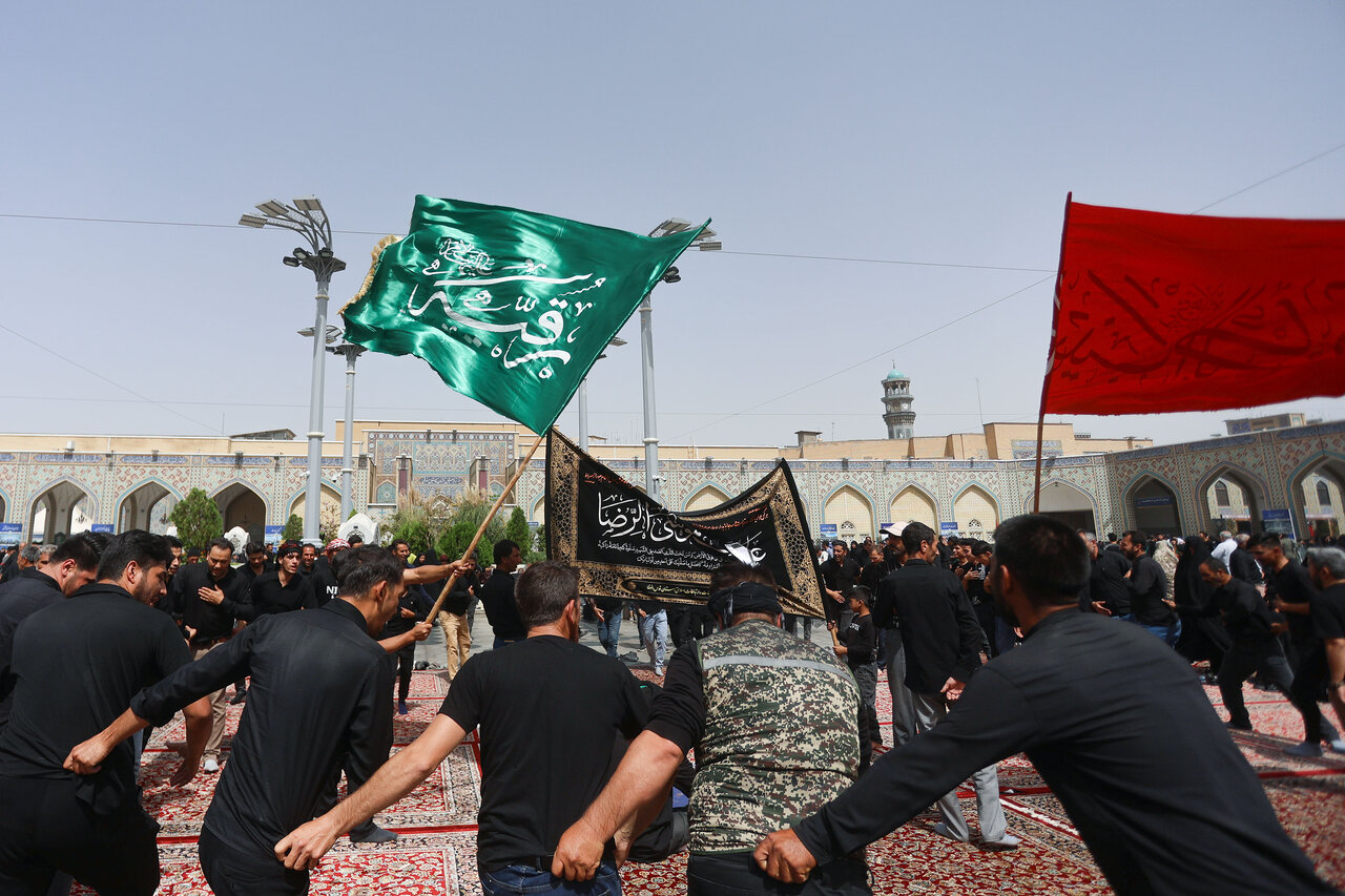 وفقا لما أفادته وكالة أنباء أهل البيت (ع) الدولية ــ أبنا ــ أقيمت مراسم عزاء في صحون الحرم الرضوي الشریف بمناسبة ذكرى استشهاد الإمام الرضا (ع)، شارکت فیها المواکب الدينية من كافة أنحاء البلاد.