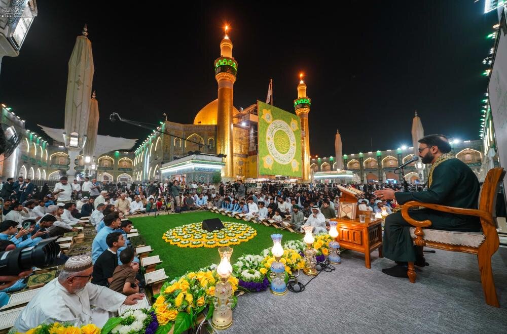 وفقا لما أفادته وكالة أنباء أهل البيت (ع) الدولية ــ أبنا ــ برعاية الأمانة العامّة للعتبة العلويّة المقدّسة أقام "دار القرآن الكريم" محفلًا قرآنيًا دوليًا في باحة الحرم العلويّ المطهَّر، بمشاركة نخبة من قرّاء العالم الإسلامي.