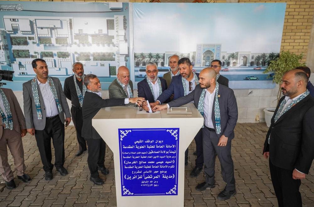 وفقا لما أفادته وكالة أنباء أهل البيت (ع) الدولية ــ أبنا ــ ضمن معالم الاحتفال والفعاليات في أسبوع الصادقَينِ الدولي، المُقام بمناسبة الذكرى العطرة لولادة سيد الكونين النبي محمد وحفيده الإمام الصادق (صلوات الله وسلامه عليهما)، بادر الأمين العام للعتبة العلوية المقدسة الخادم السيد عيسى الخرسان إلى وضع حجر الأساس لمشروع مدينة كبرى لخدمة الزائرين على طريق (يا حسين) بمساحة 59000 م².