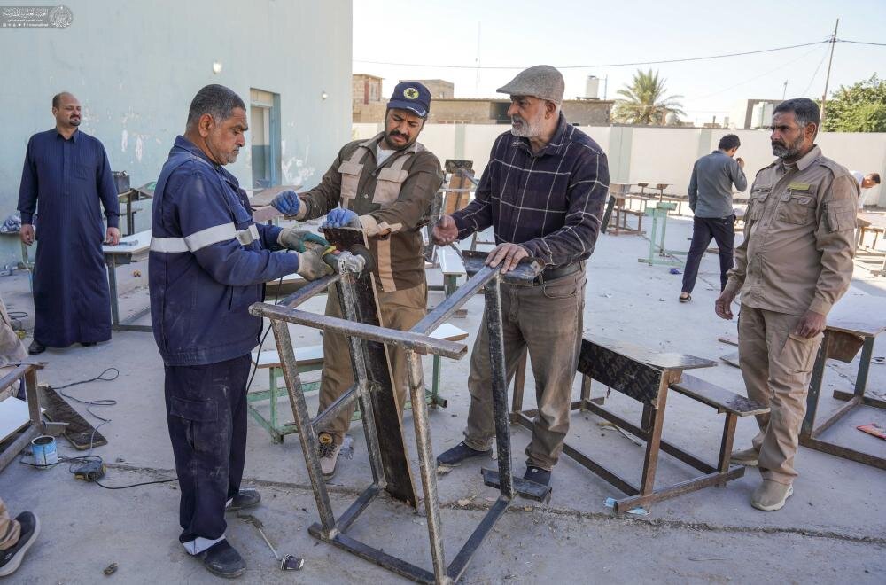 وفقا لما أفادته وكالة أهل البيت (ع) للأنباء ــ ابنا ــ يواصل مركز قنبر للمتشرفين بالخدمة في العتبة العلويّة المقدّسة تنفيذ حملة "عليٌّ أبونا" التي تُعنى بصيانة وتجهيز المقاعد الدراسية في محافظة النجف الأشرف، مع تركيز خاص هذا العام على دعم المدارس الواقعة في القرى والأرياف.