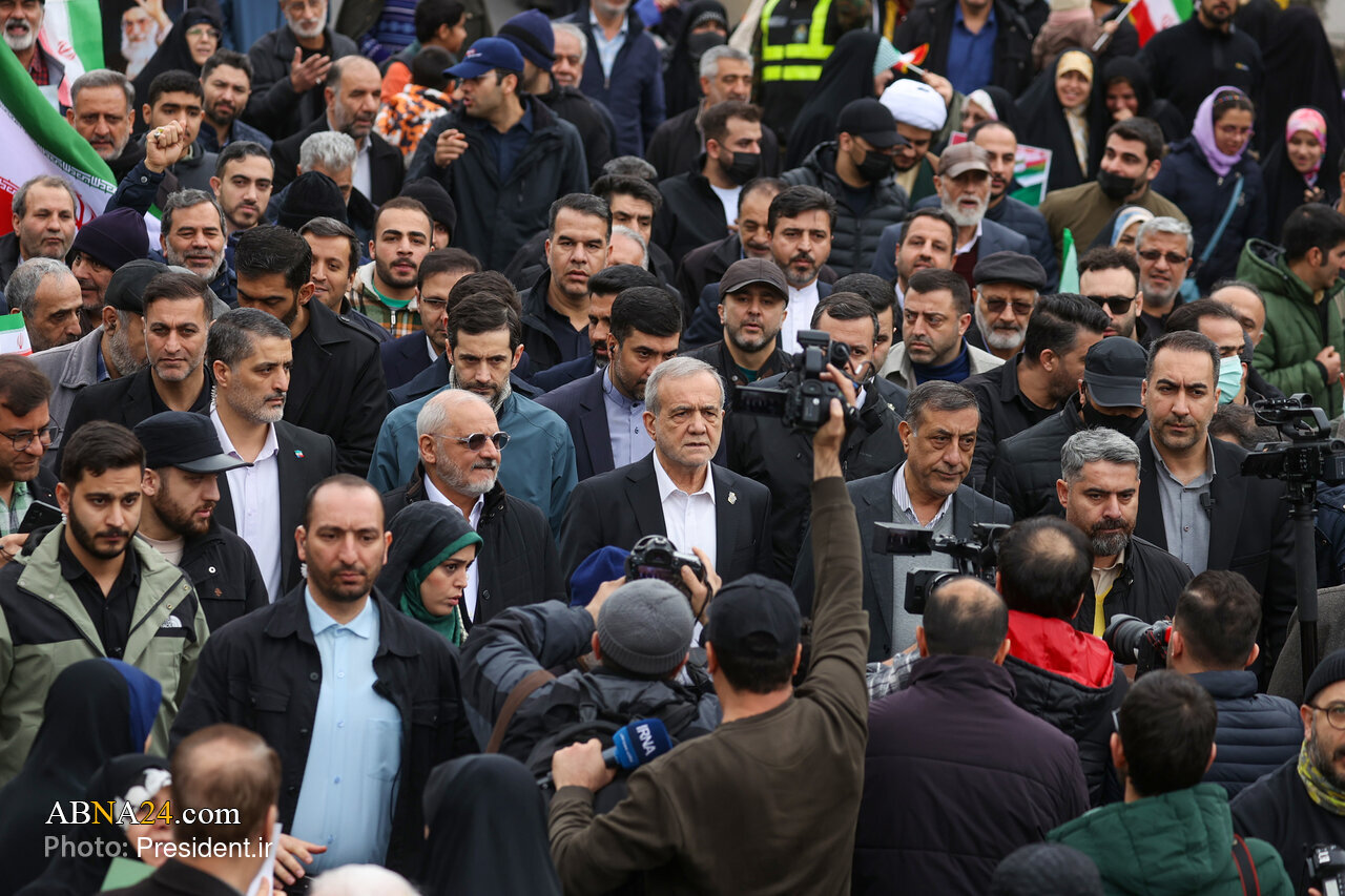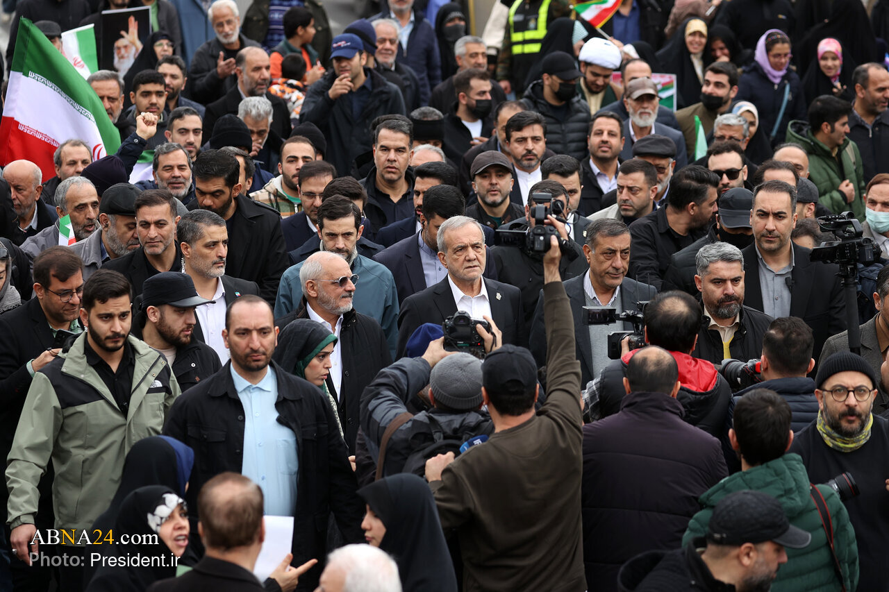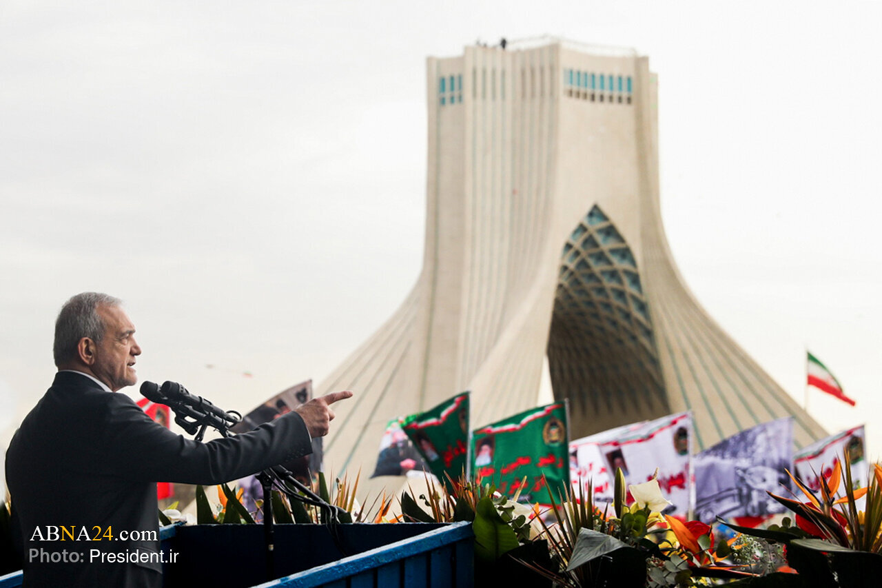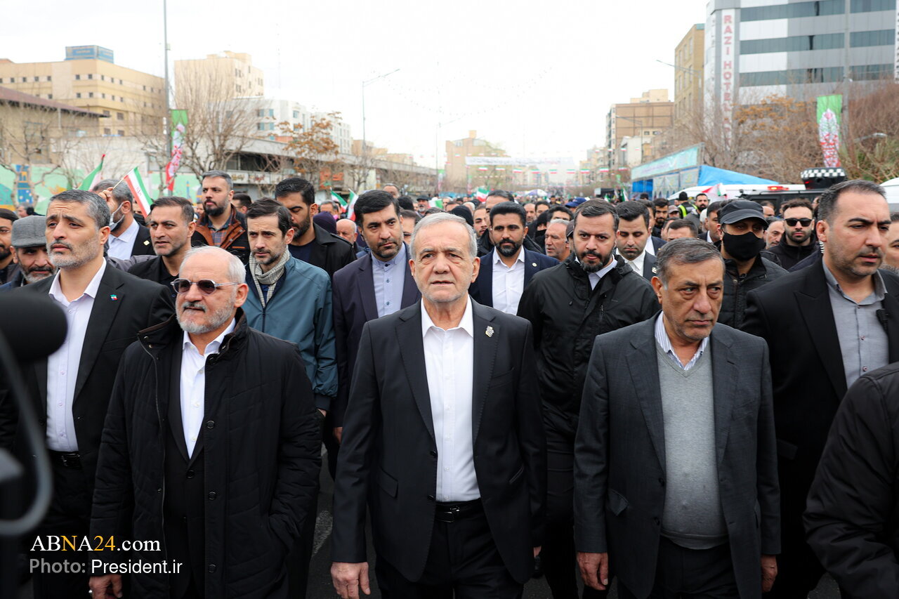 وفقا لما أفادته وكالة أنباء أهل البيت (ع) الدولية ــ انطلقت مسيرات شعبية واسعة في كافة مدن إيران، بمناسبة الذكرى السنوية لانتصار الثورة الاسلامية في إيران، على يد الإمام آية الله العظمى "روح الله الخميني" (رضوان الله تعالى)، وفي العاصمة طهران، اكتظت شوارع المدينة بالمشاركين، في هذا الحدث العظيم لتجديد ميثاق مبادئ الثورة الاسلامية المباركة للإمام الراحل، وألقى الرئيس الإيراني مسعود بزشكيان كلمة بهذه المناسبة العظيمة.
