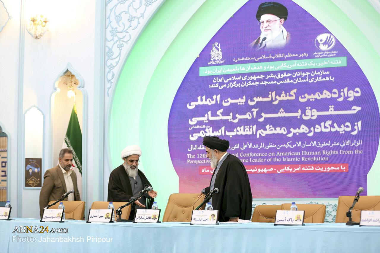 وفقا لما أفادته وكالة أنباء أهل البيت (ع) الدولية ــ انعقد المؤتمر الدولي الثاني عشر حول "حقوق الإنسان الأمريكية من منظور قائد الثورة الإسلامية"، مع التركيز على محور "الفتنة الأمريكية - الصهيونية". ونُظم هذا الحدث من قبل منظمة الشباب لحقوق الإنسان التابعة لجمهورية إيران الإسلامية، بالتعاون مع مسجد جمكران المقدس، وأقيم في قاعة البقيع بالمسجد المقدس بجمكران، شارك فيه علماء أعلام وأكاديميون وموثقفون .