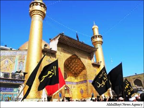وشهد الصحن الحيدري الشريف توافد مواكب العزاء اعتبارا من مساء الاربعاء ليلة الزيارة وحتى بعد ظهر الخميس حيث اتشحت أروقة ومحيط الحرم العلوي الشريف ومدينة النجف الاشرف بالحزن والسواد تزامنا مع المناسبة الاليمة.