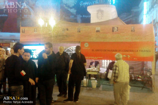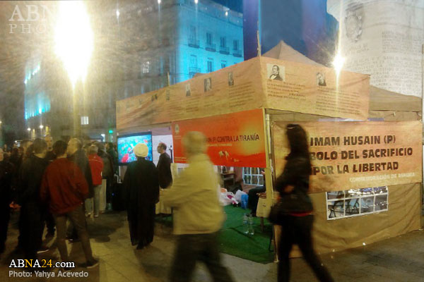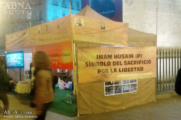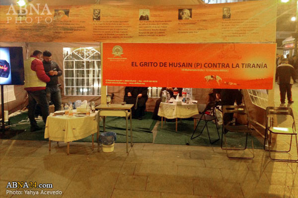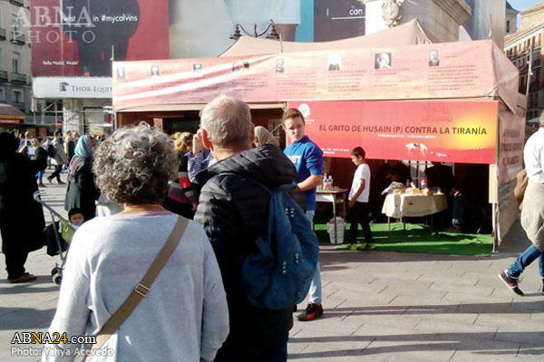 ابنا: قام المسلمون الشيعة المقيمون في العاصمة الاسبانية "مدريد" بنصب خيمة الامام الحسين (ع) لتقديم الخدمات من الأكل والشرب، للمارين في الشارع .